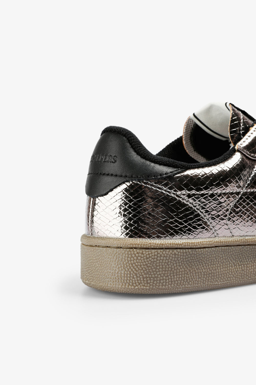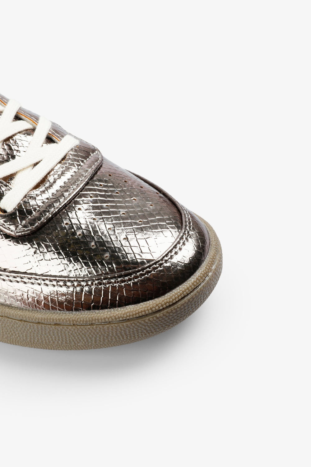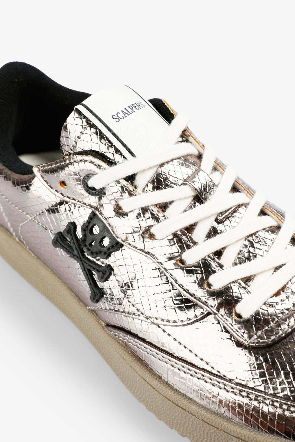 Sneakers with metallic snake texture finish and contrast details. White laces and contrast skull.