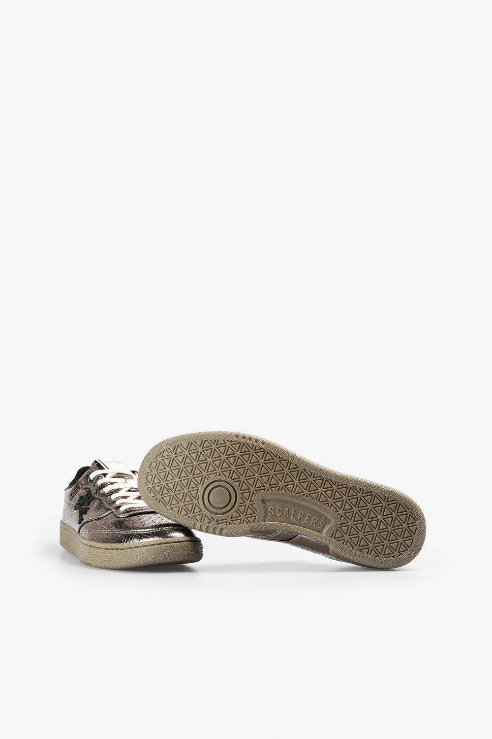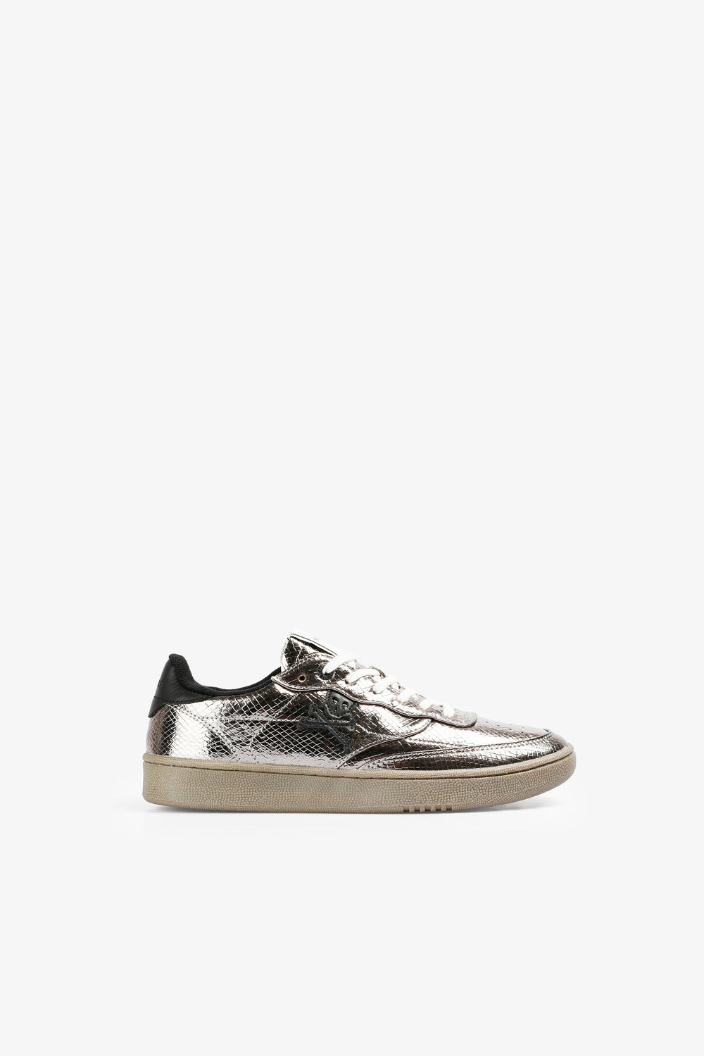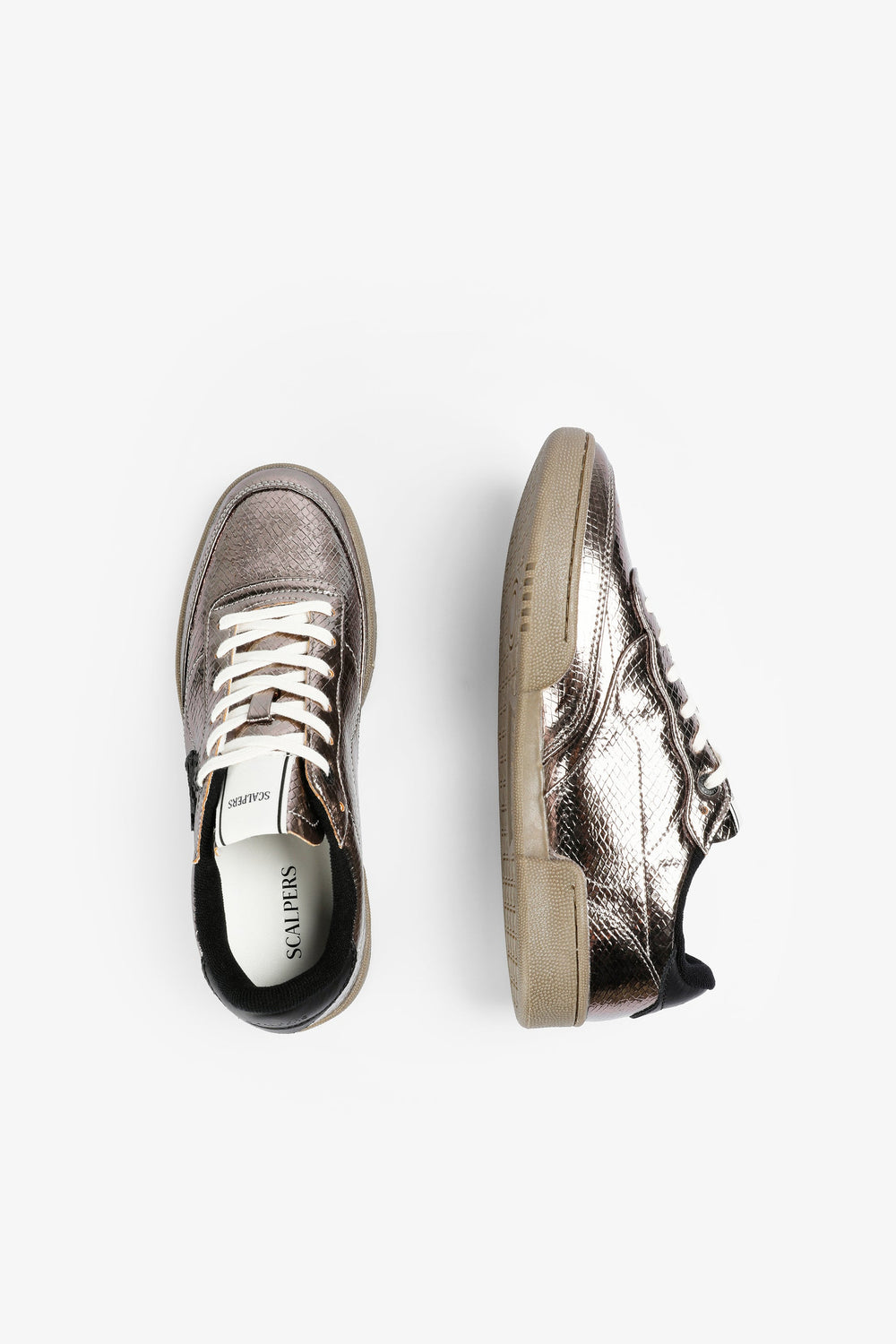 Sneakers with metallic snake texture finish and contrast details. White laces and contrast skull.