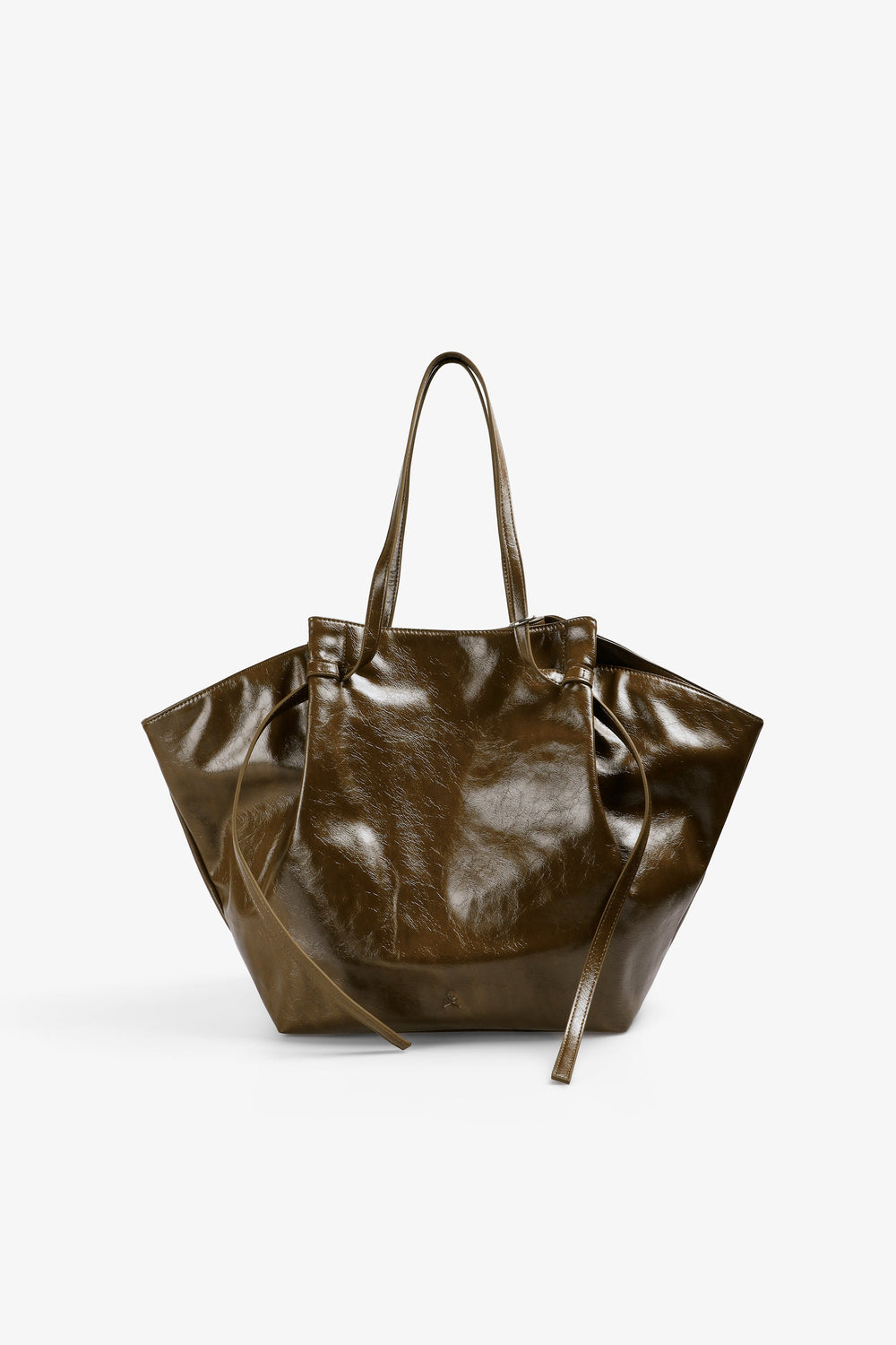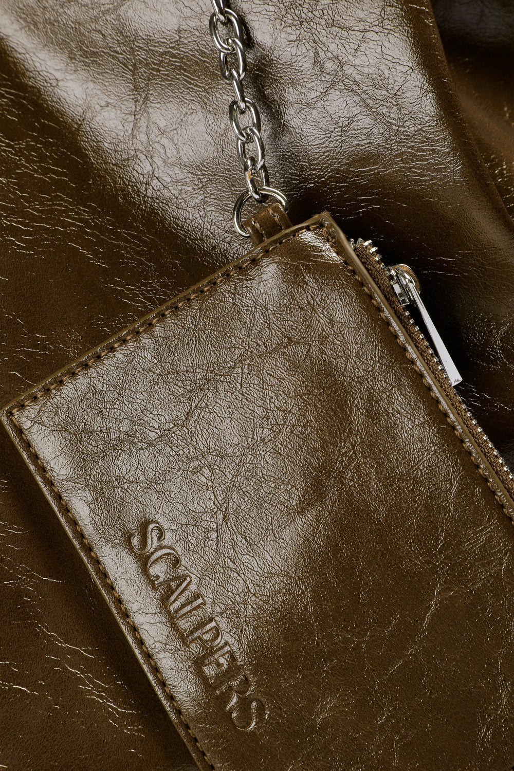 PU tote bag. Lined. Double zipped pocket. Adjustable side straps. Matching wallet inside