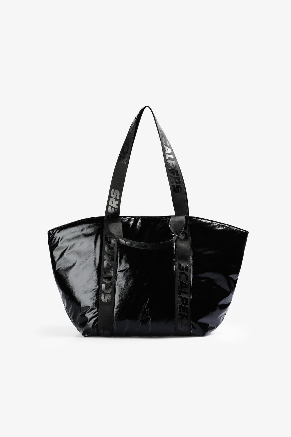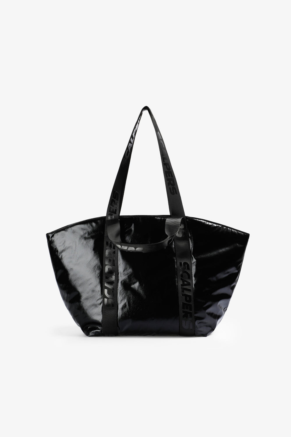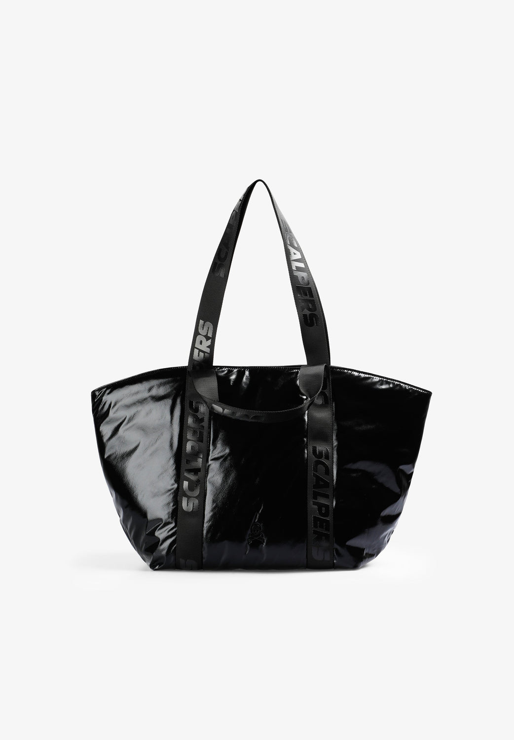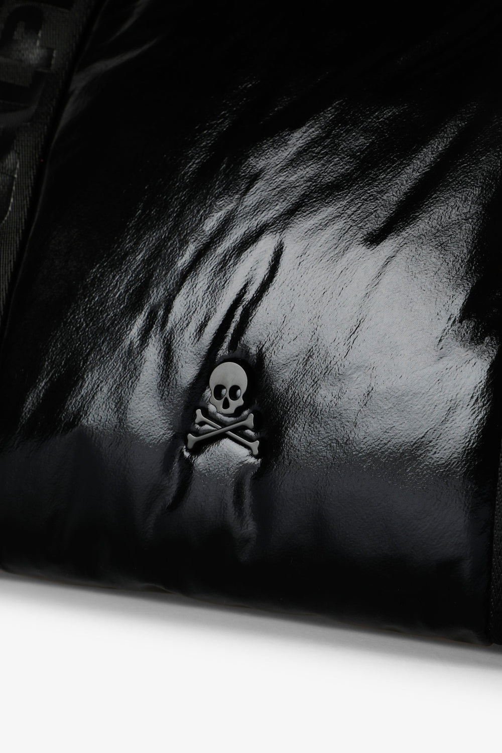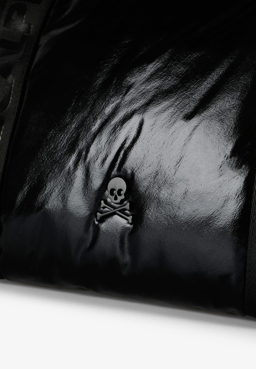 Sports bag made of PU. Water resistant. Long strap and short handle. Logo detail on handles and matching metallic skull on front. Magnetic button closure. Inner pocket with zip closure and matching embroidered logo patch detail.