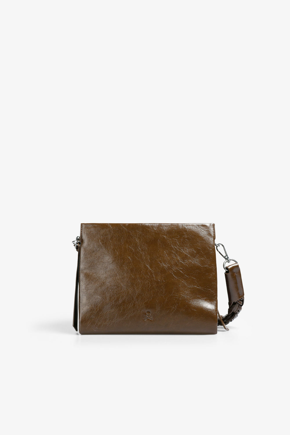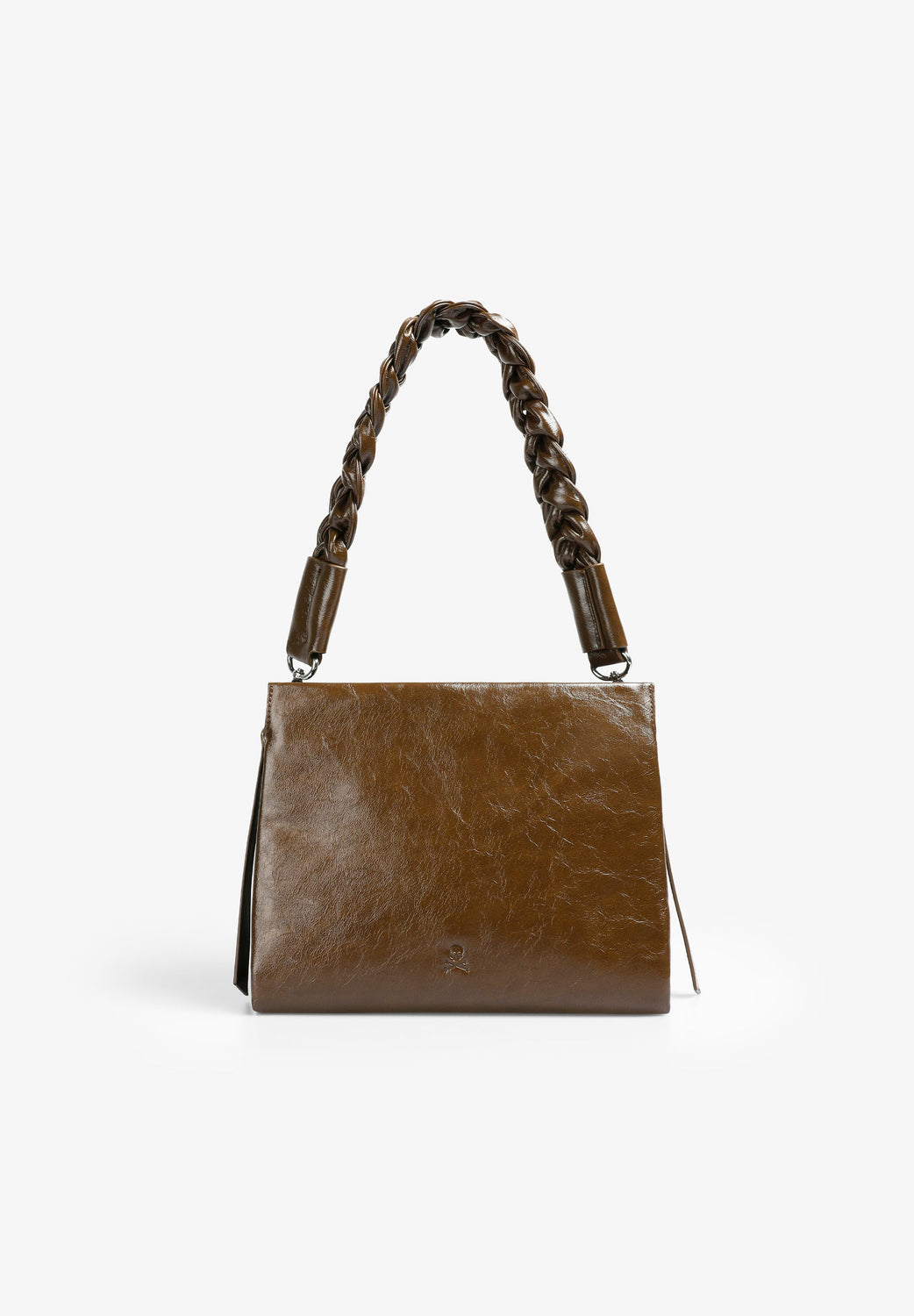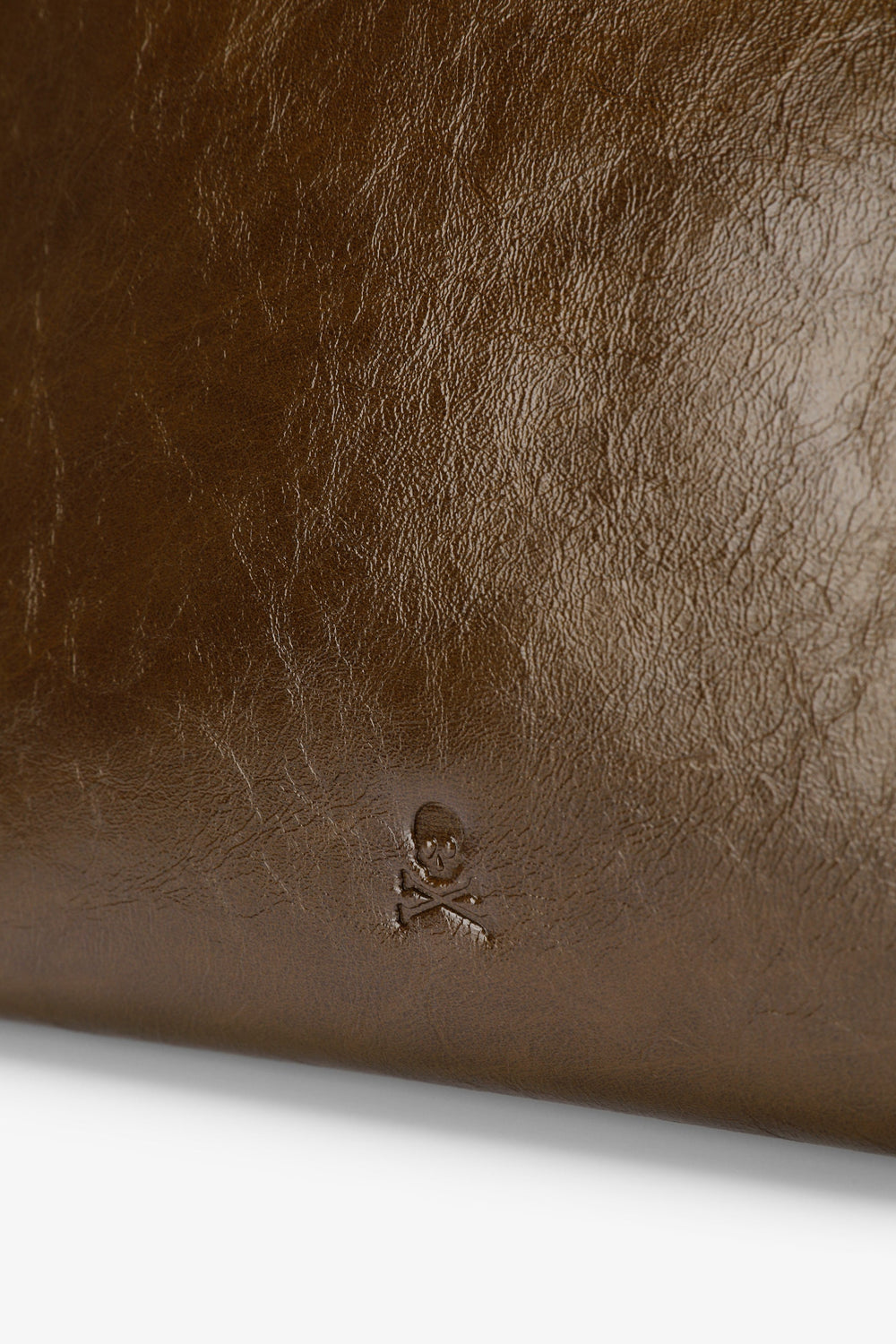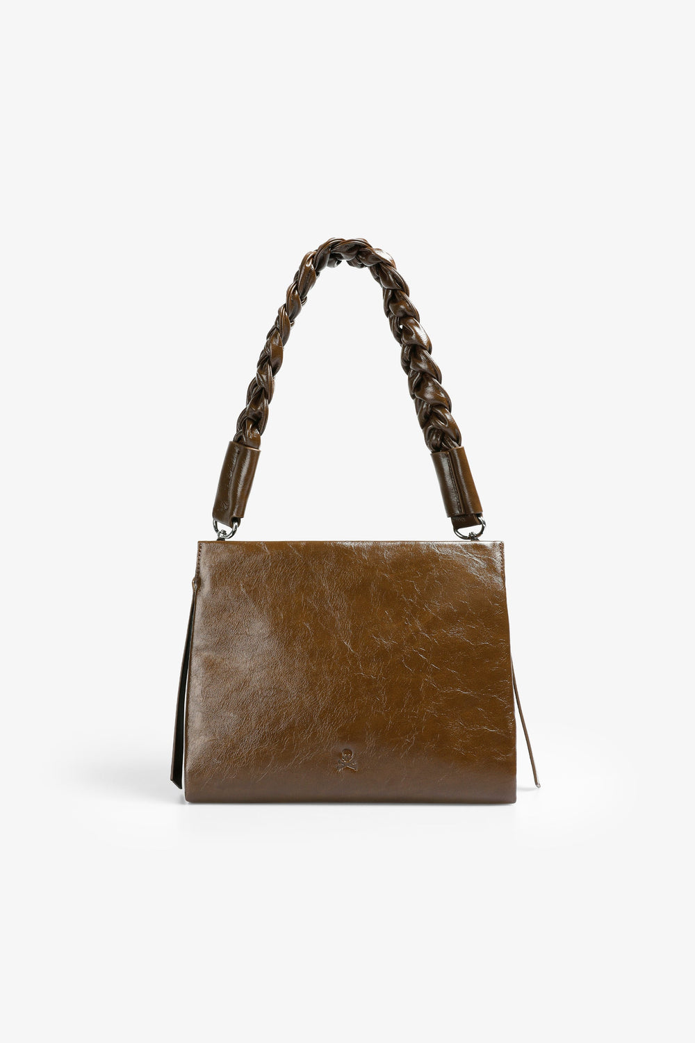 Bag made of polyurethane. Zip fastening. Short braided handle with metallic details and long adjustable strap. Matching front skull embroidery detail. Inner lining and pocket with zip closure and logo detail.
