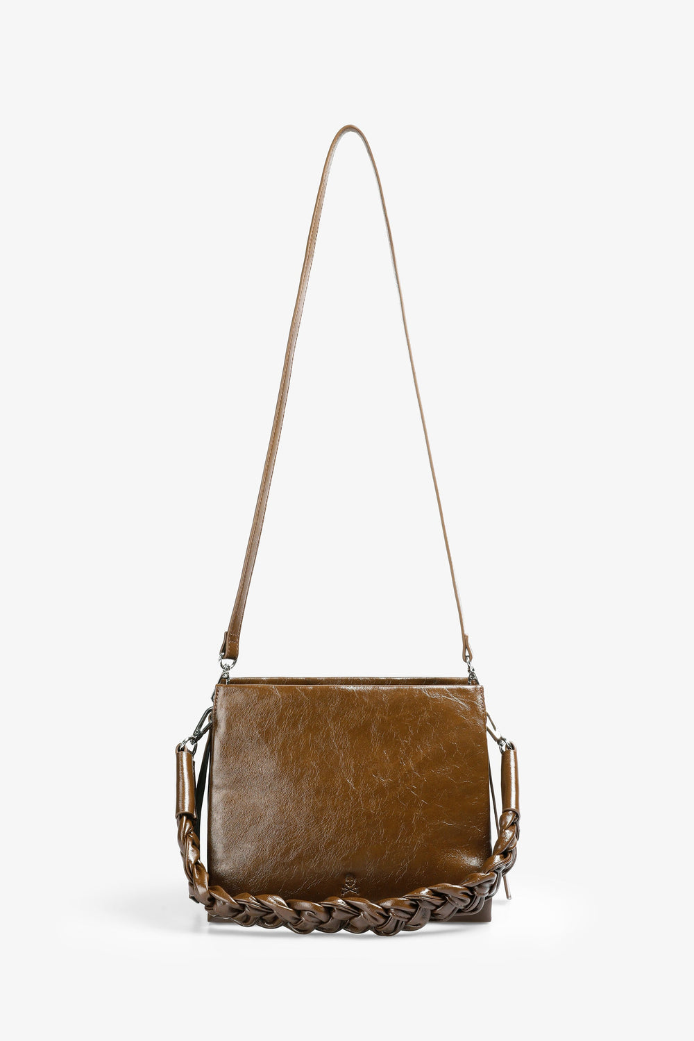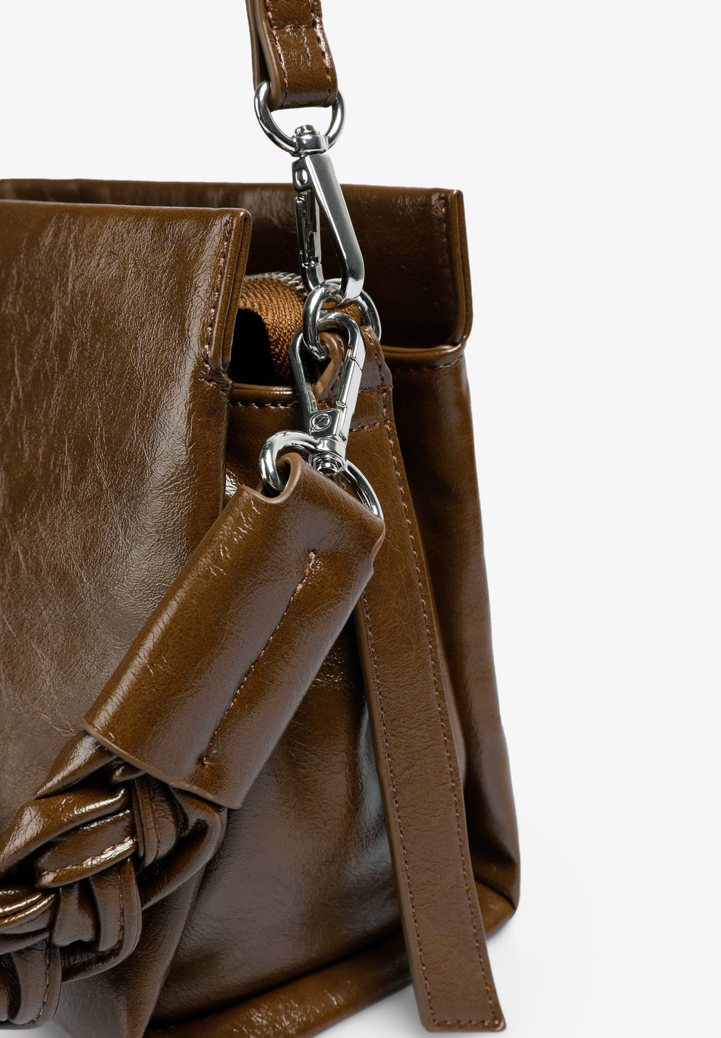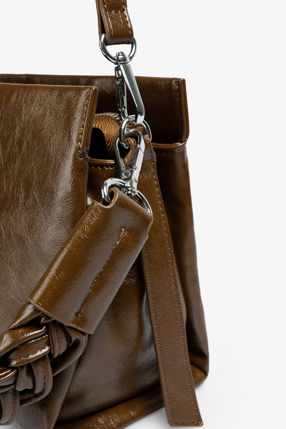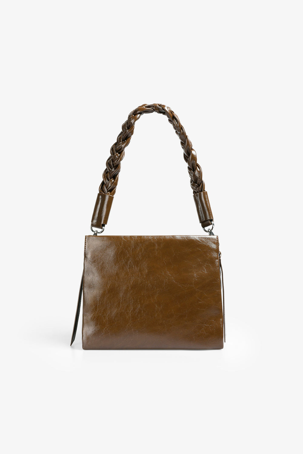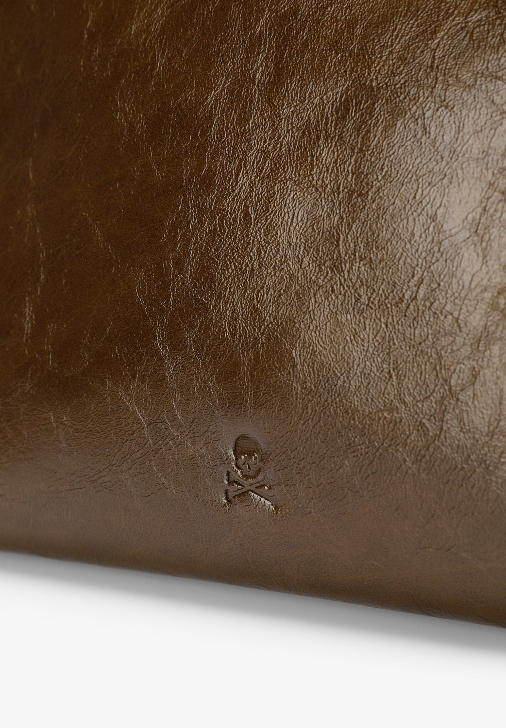 Bag made of polyurethane. Zip fastening. Short braided handle with metallic details and long adjustable strap. Matching front skull embroidery detail. Inner lining and pocket with zip closure and logo detail.
