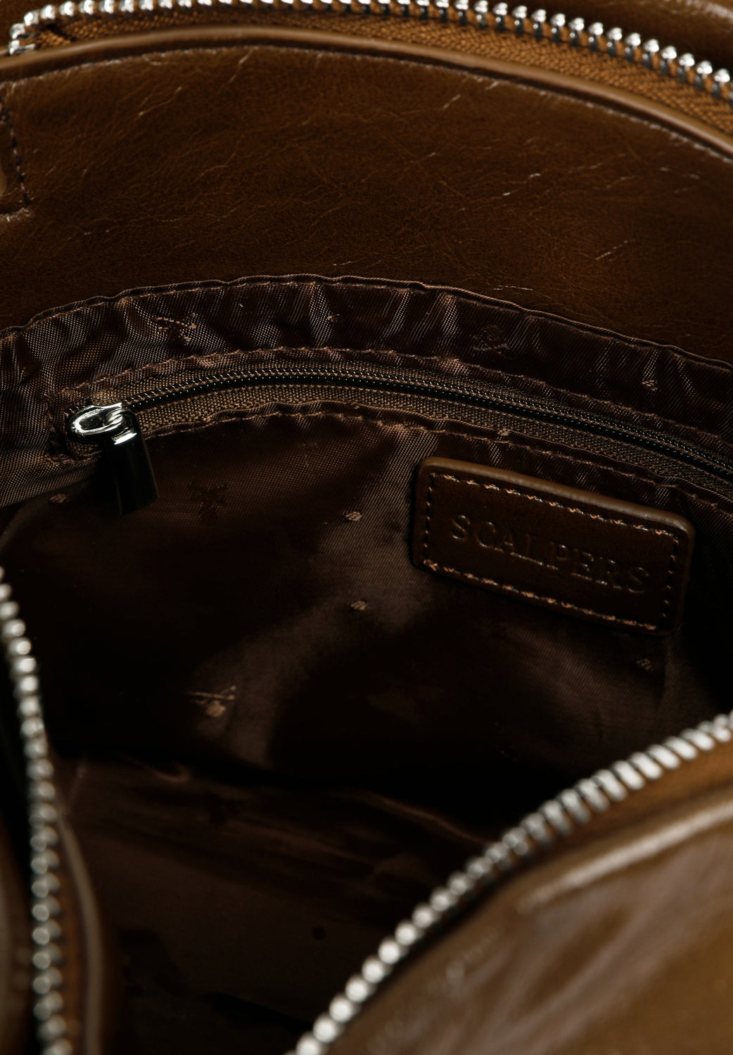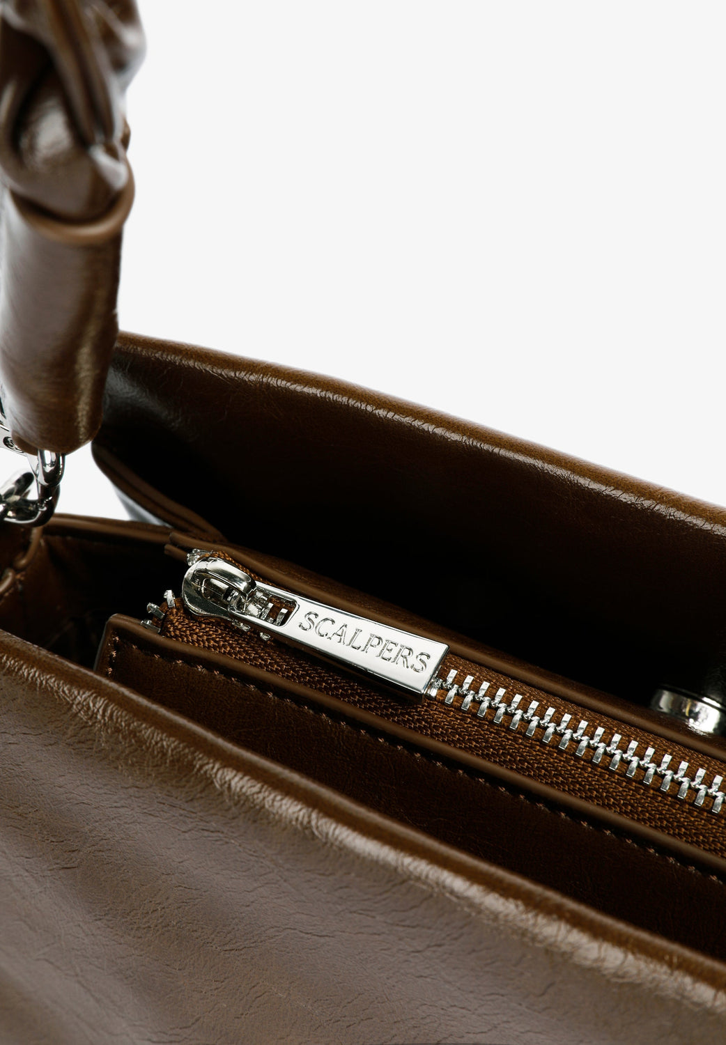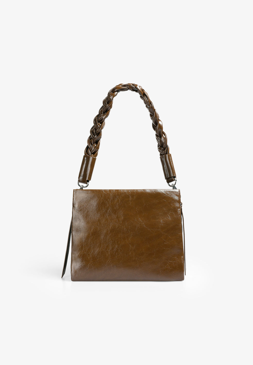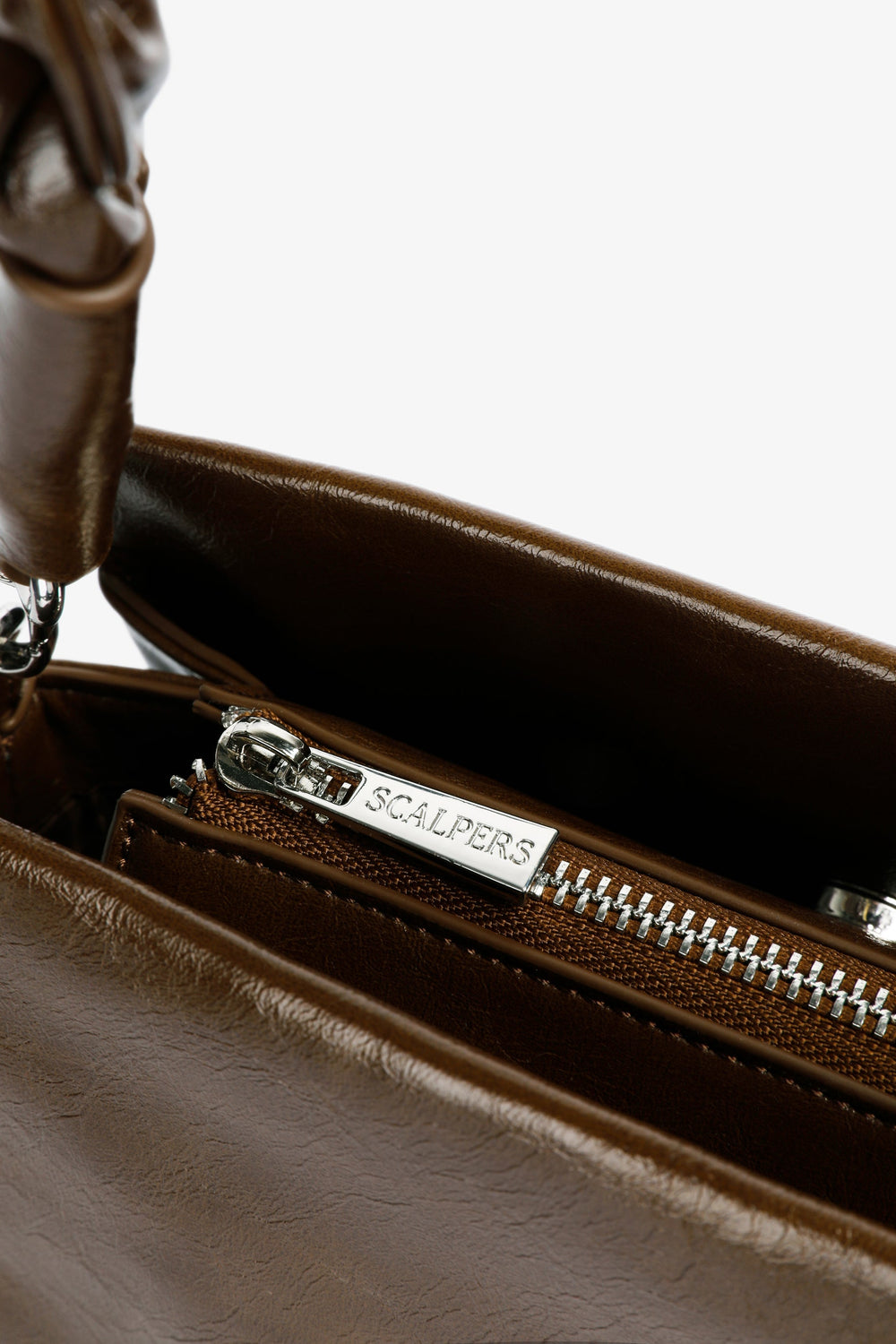Bag made of polyurethane. Zip fastening. Short braided handle with metallic details and long adjustable strap. Matching front skull embroidery detail. Inner lining and pocket with zip closure and logo detail.