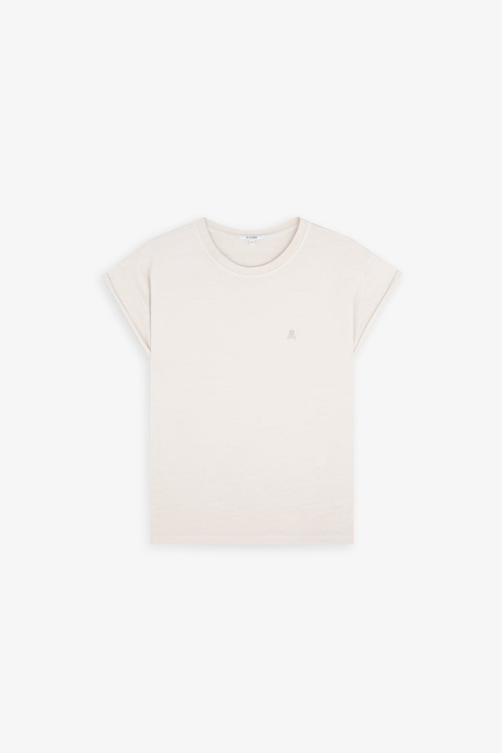 Sleeveless T-shirt. Round neck. Matching embroidered skull detail on the chest.