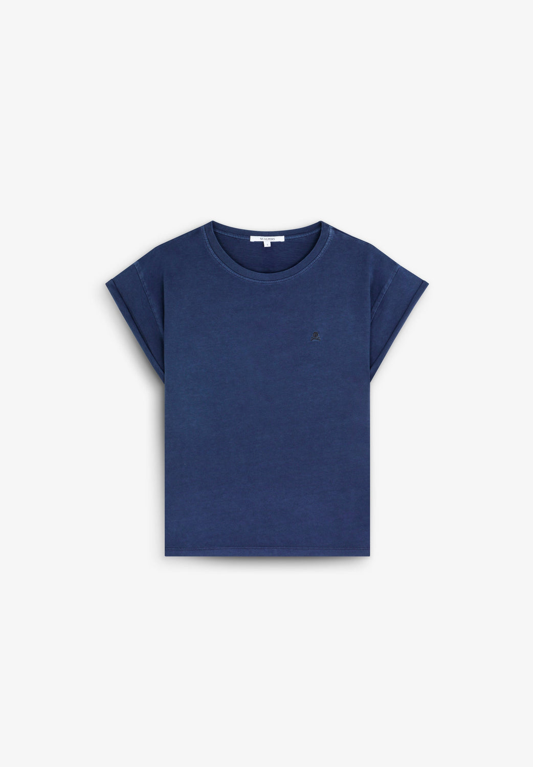 Sleeveless T-shirt. Round neck. Matching embroidered skull detail on the chest.