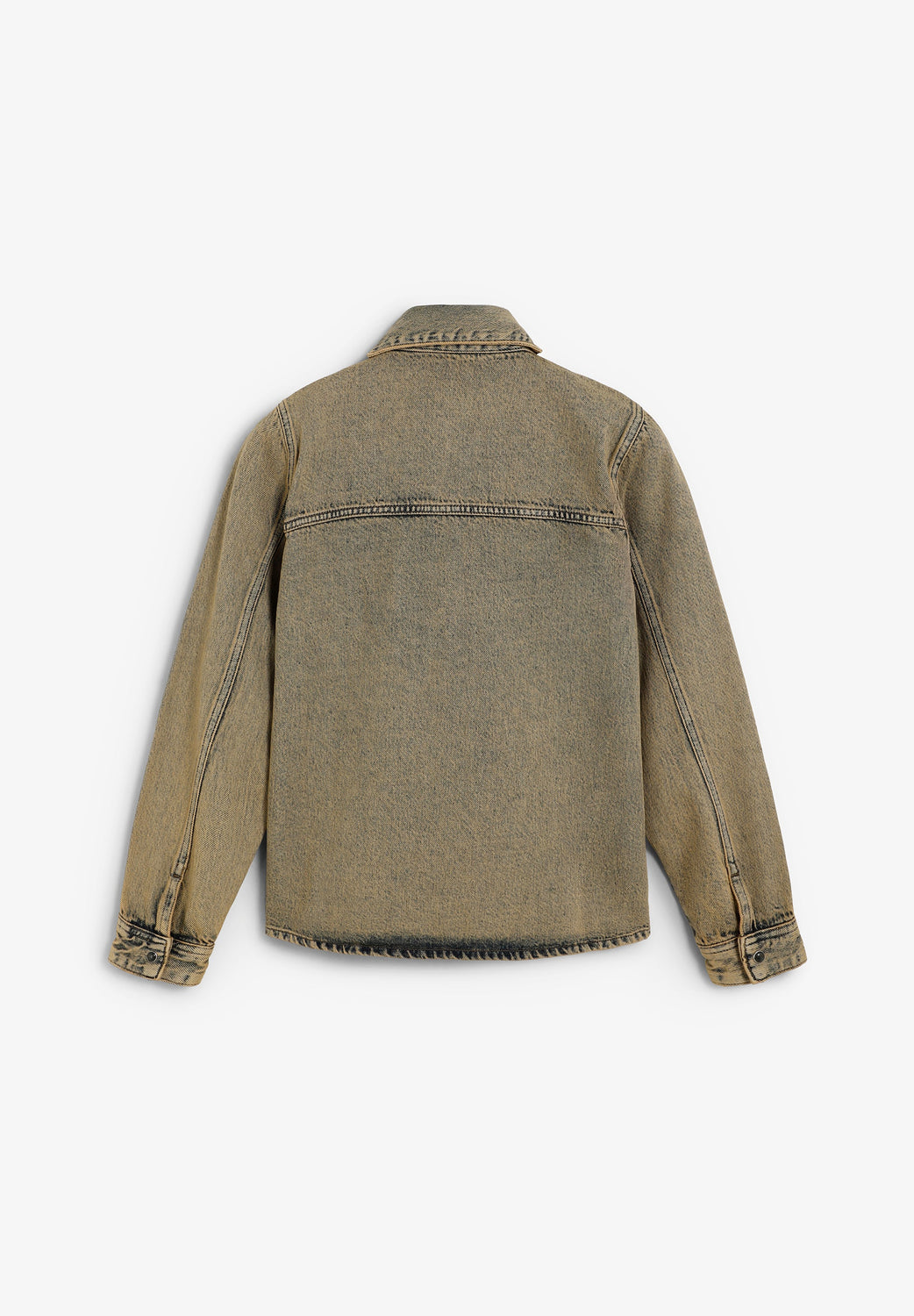 Shirt made of a cotton blend. Faded effect. Waved details on collar. Long sleeves with buttoned cuffs and embroidery. Front button fastening. Patch pockets on the chest. Embroidered detail on the back.