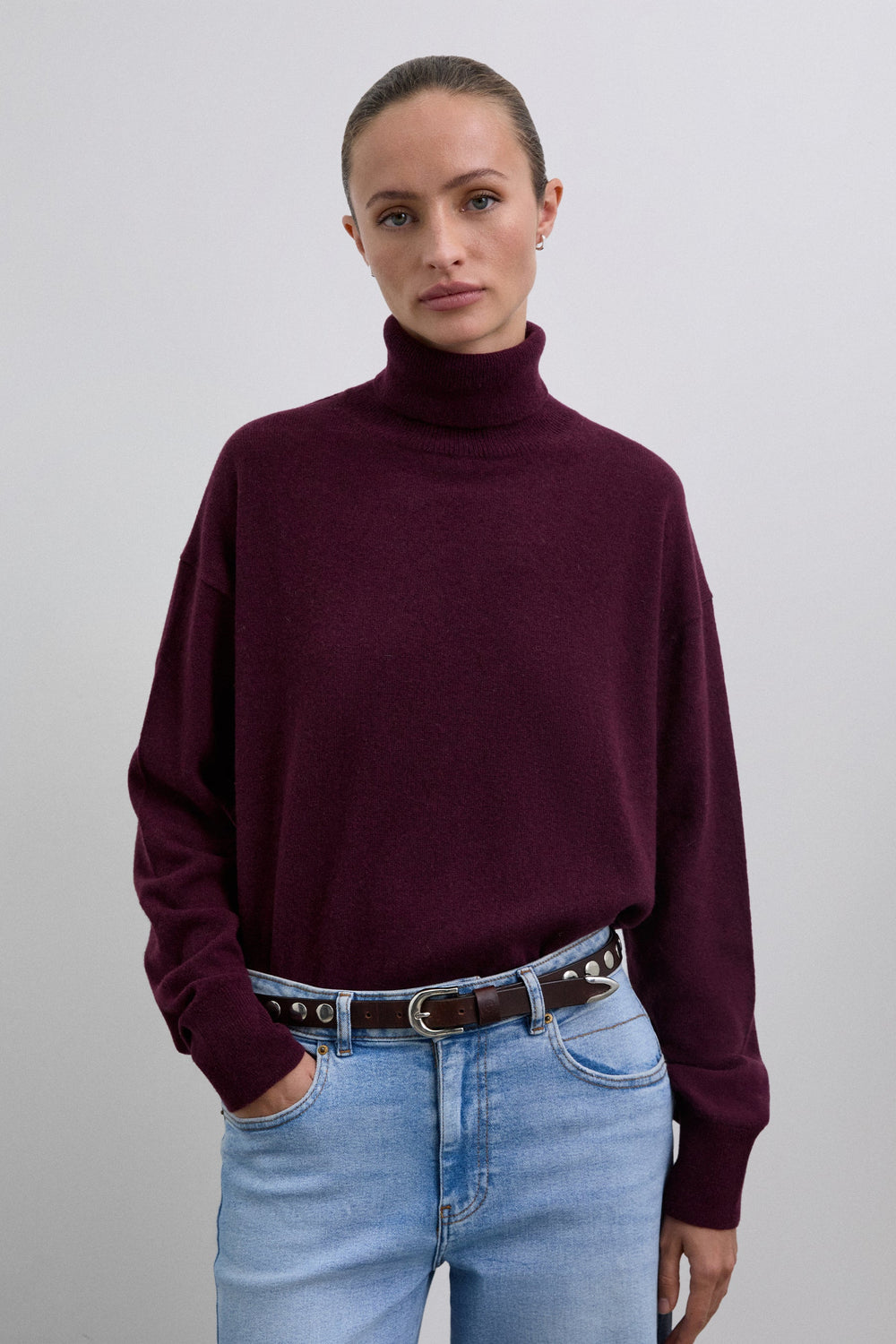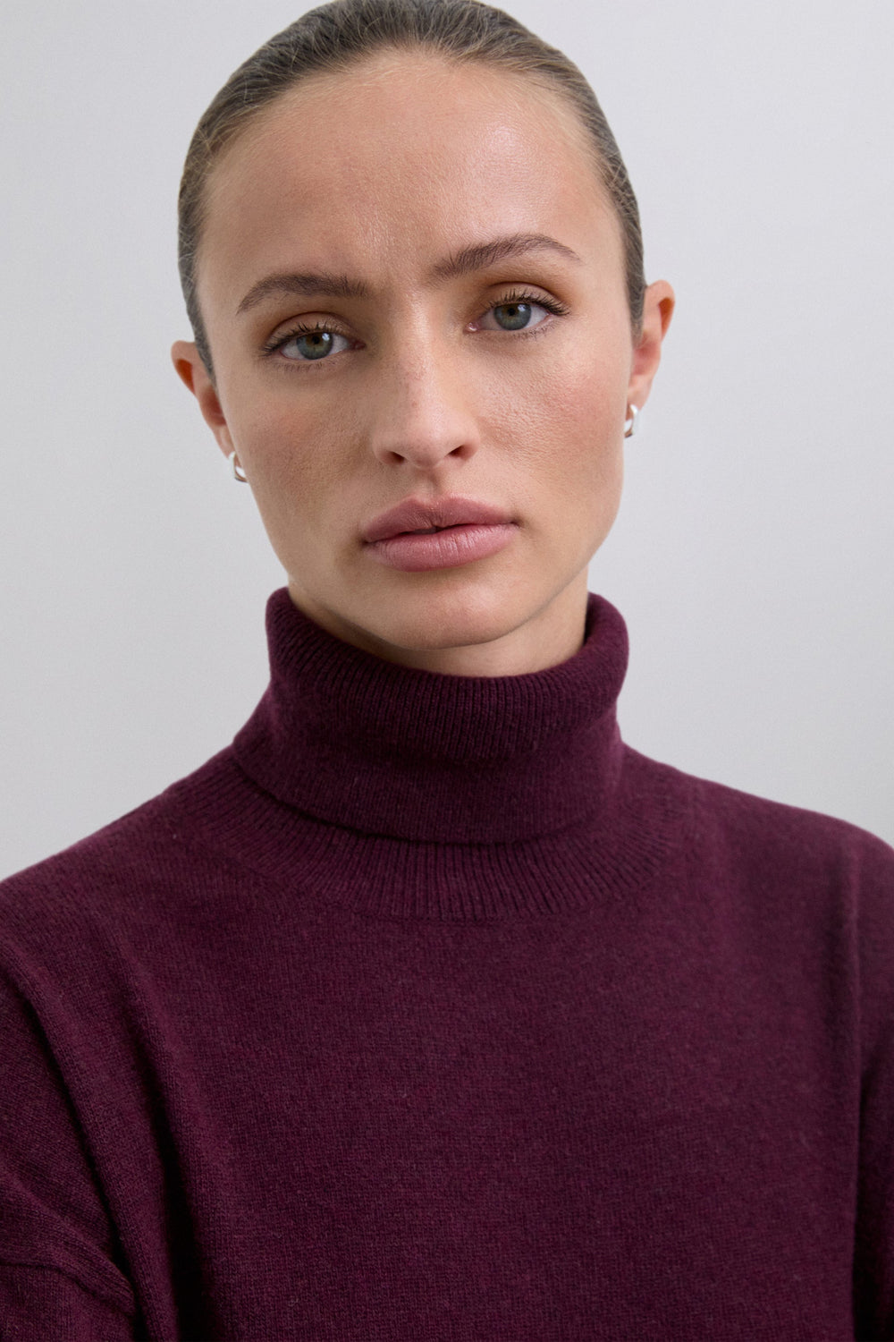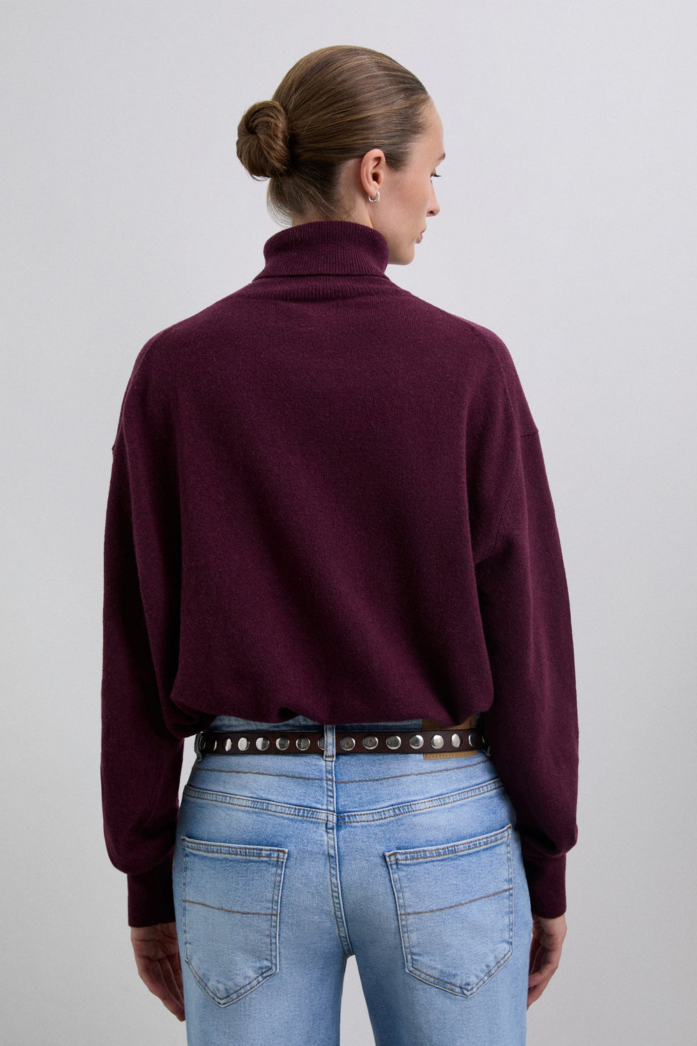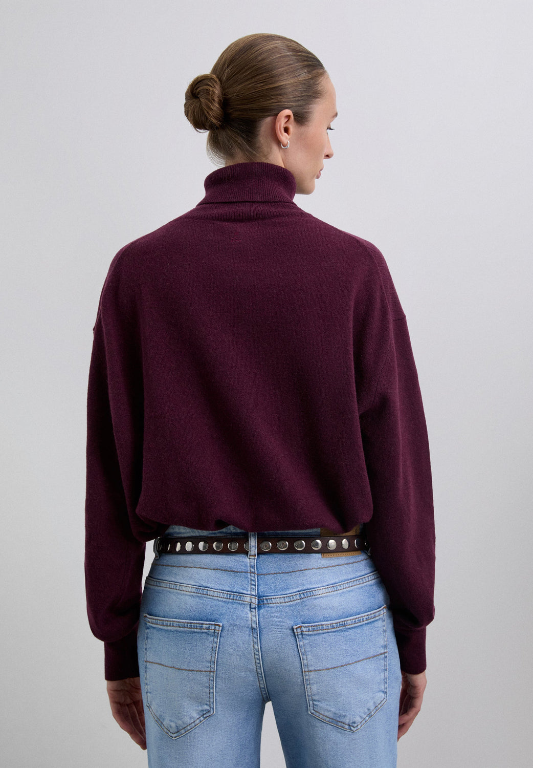 Sweater made of a wool blend. Regular fit. Roll neck. Long sleeves. Matching embroidered skull detail on the back.