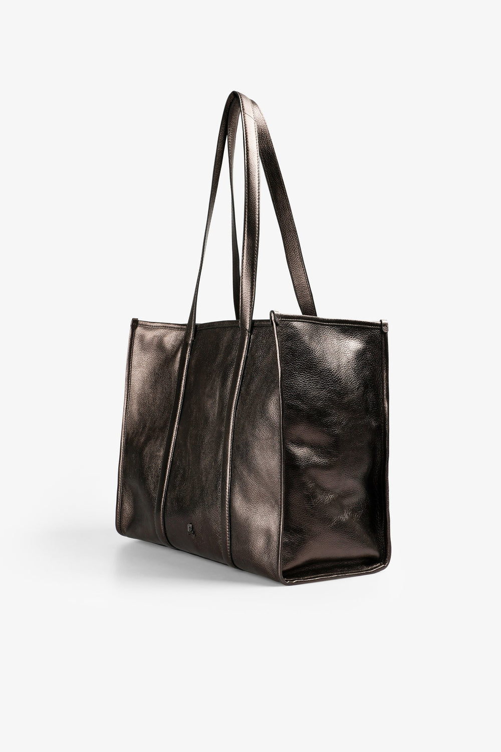 Tote bag made from 100% leather. Double straps and zip fastening. Metal logo detail on the front.