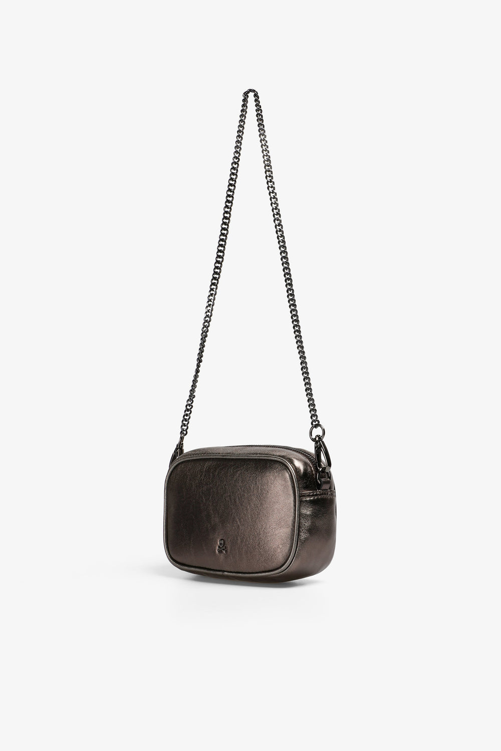 Small size bag. Made of 100% leather. Zip fastening. Long strap. Logo detail on the front.