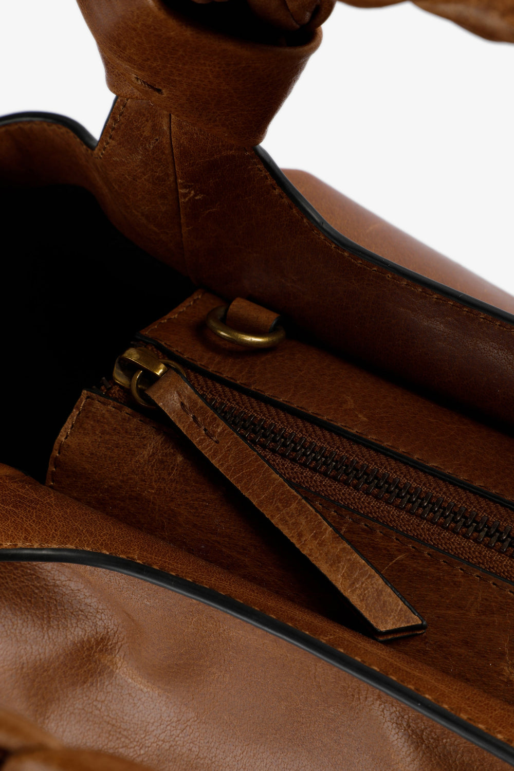 LEATHER HANDBAG WITH BRAIDED HANDLE