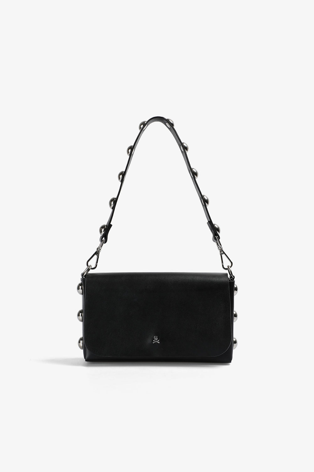 Mini bag made in 100% leather with studs details on handle and sides. Metallic logo detail on front.