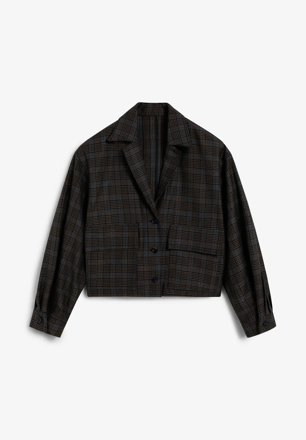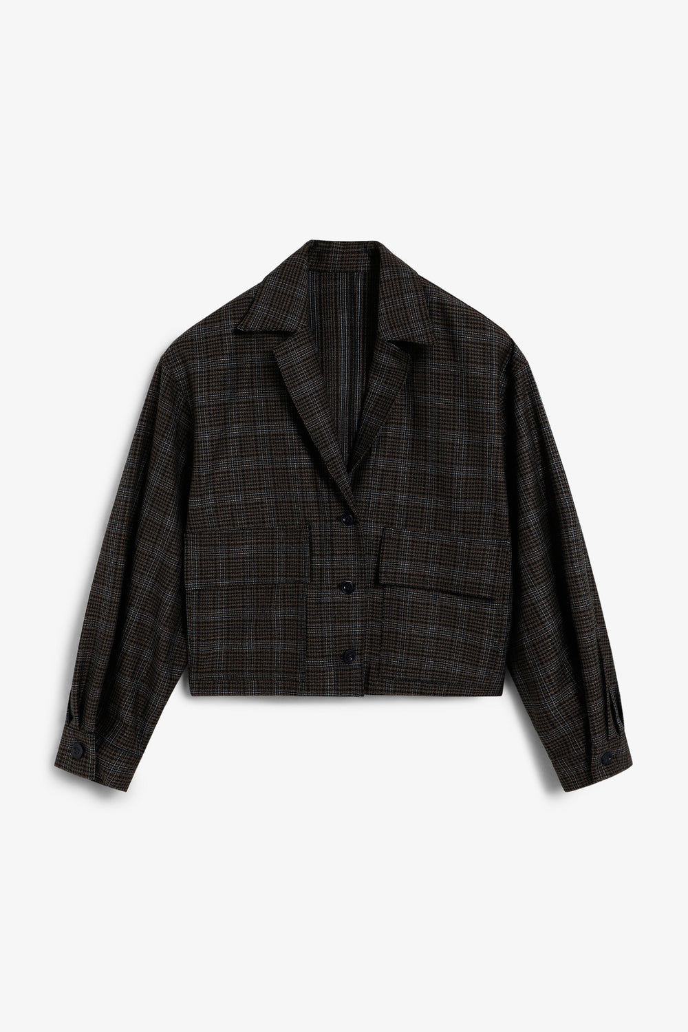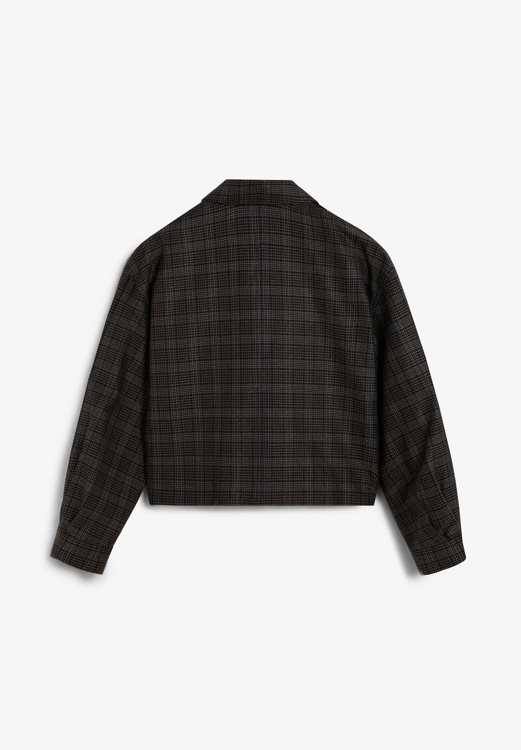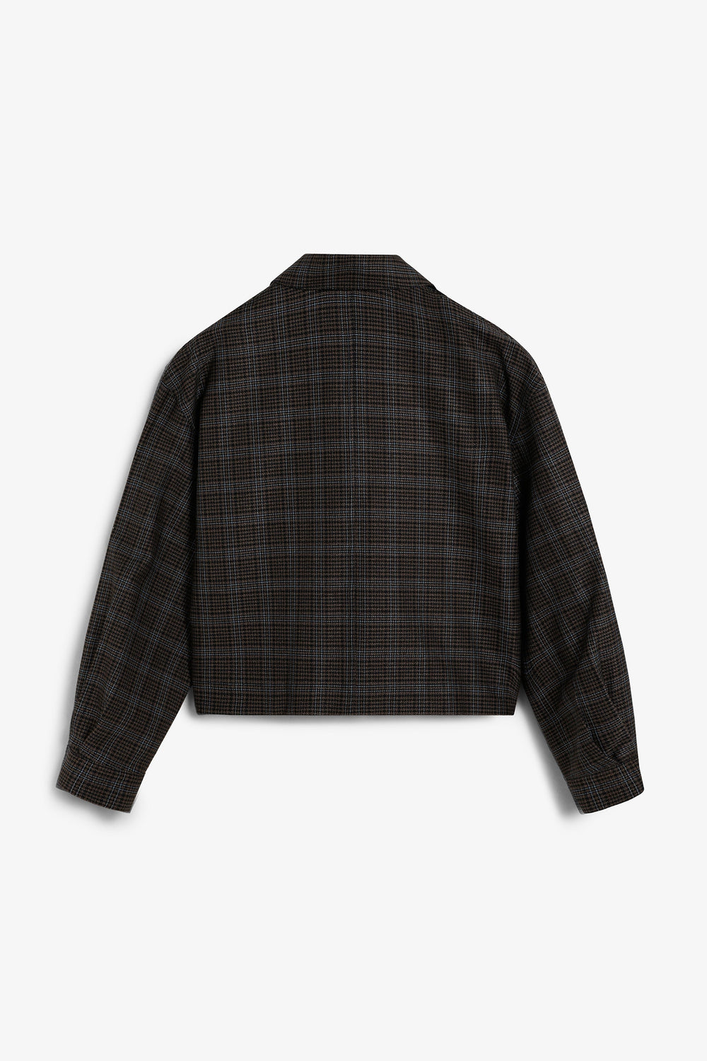Check print cardigan. Shirt collar. Long sleeves. Waist adjusters. Cuffs with button fastening. Front button fastening.