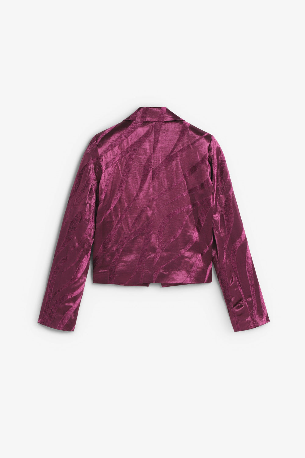 Cropped blazer with jacquard. Regular fit, peaked lapel collar. Long sleeve