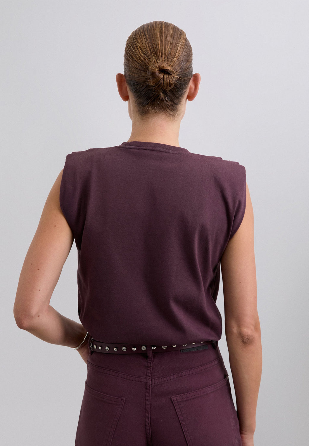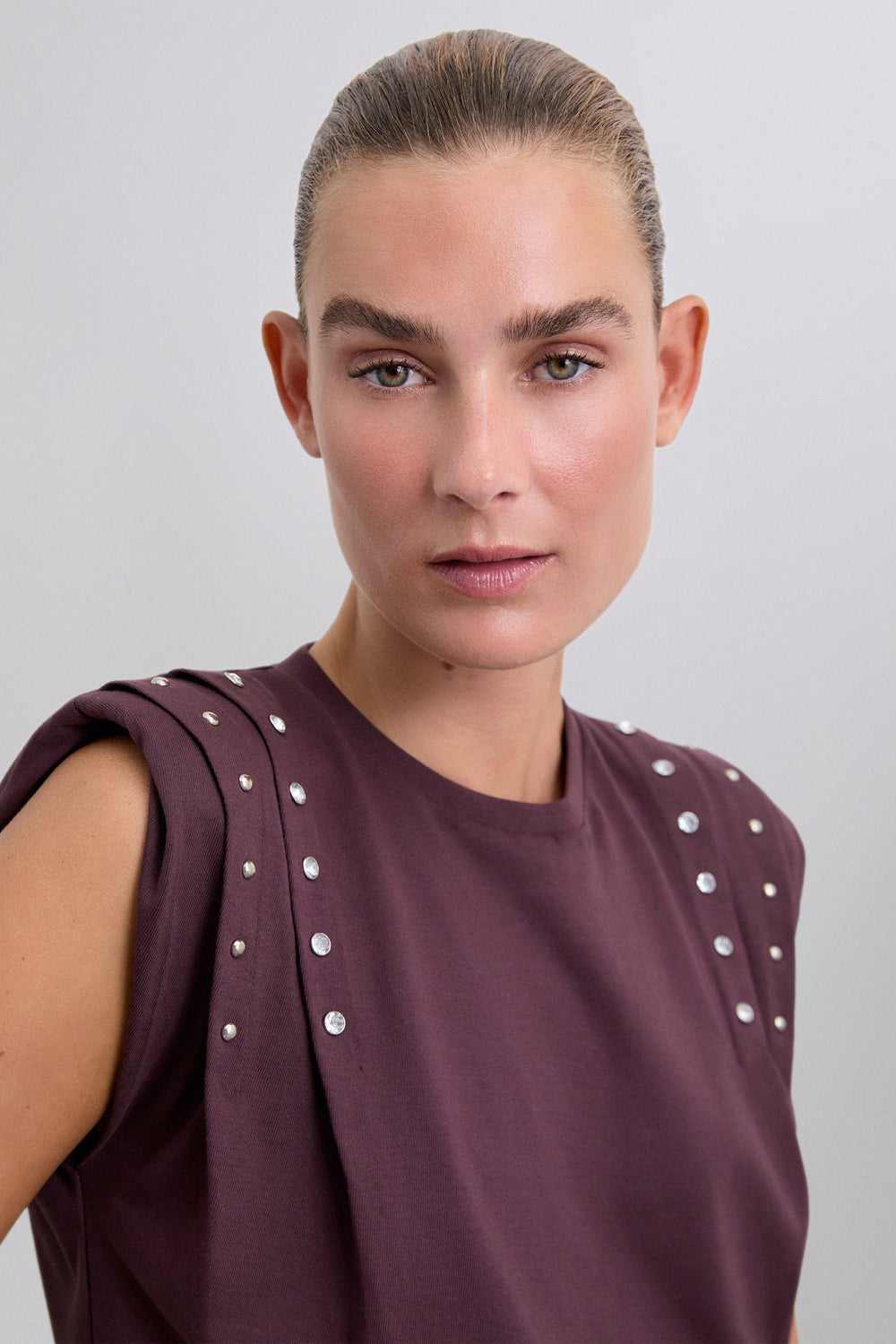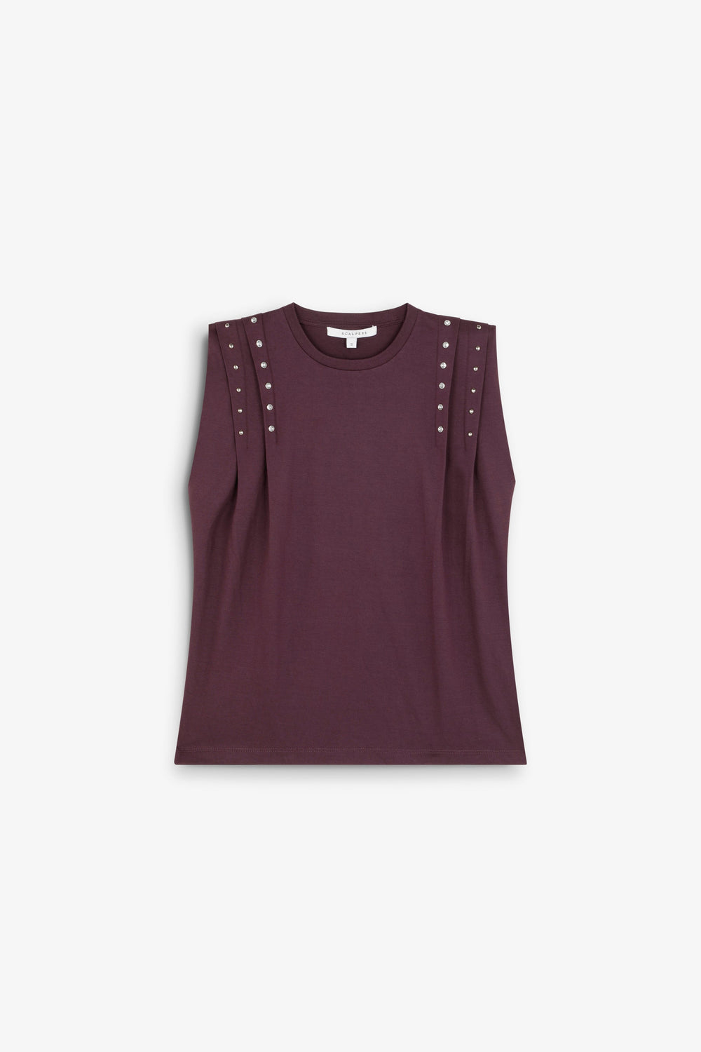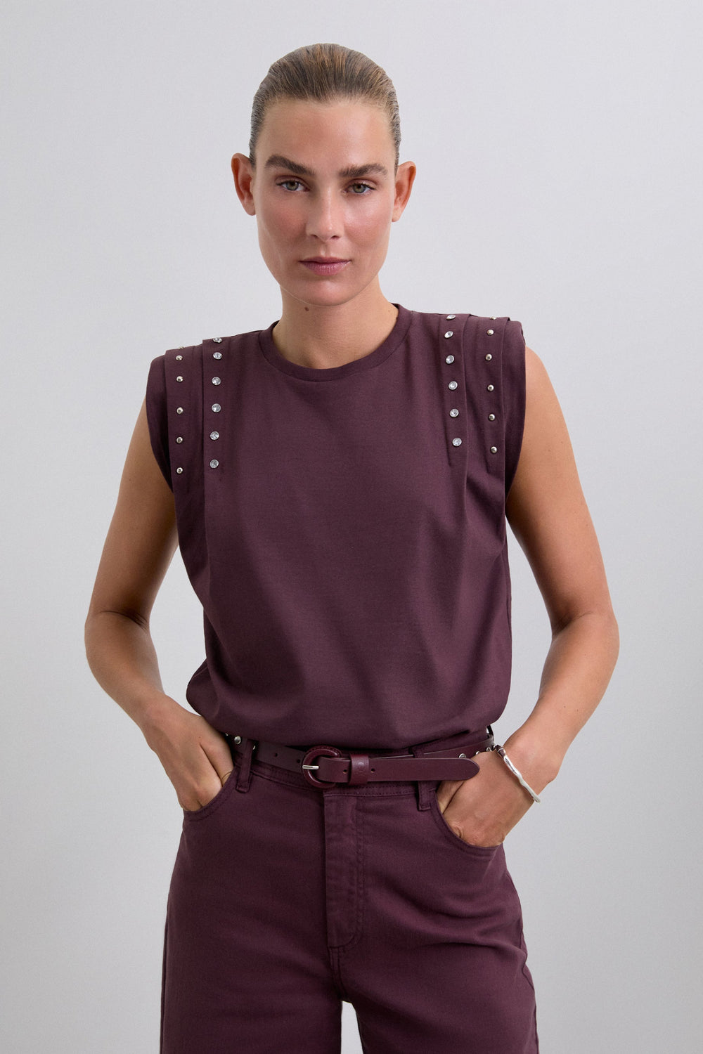 T-shirt made of 100% BCI cotton. Regular Fit. Round neck and sleeveless design. Studded detail on the shoulders.