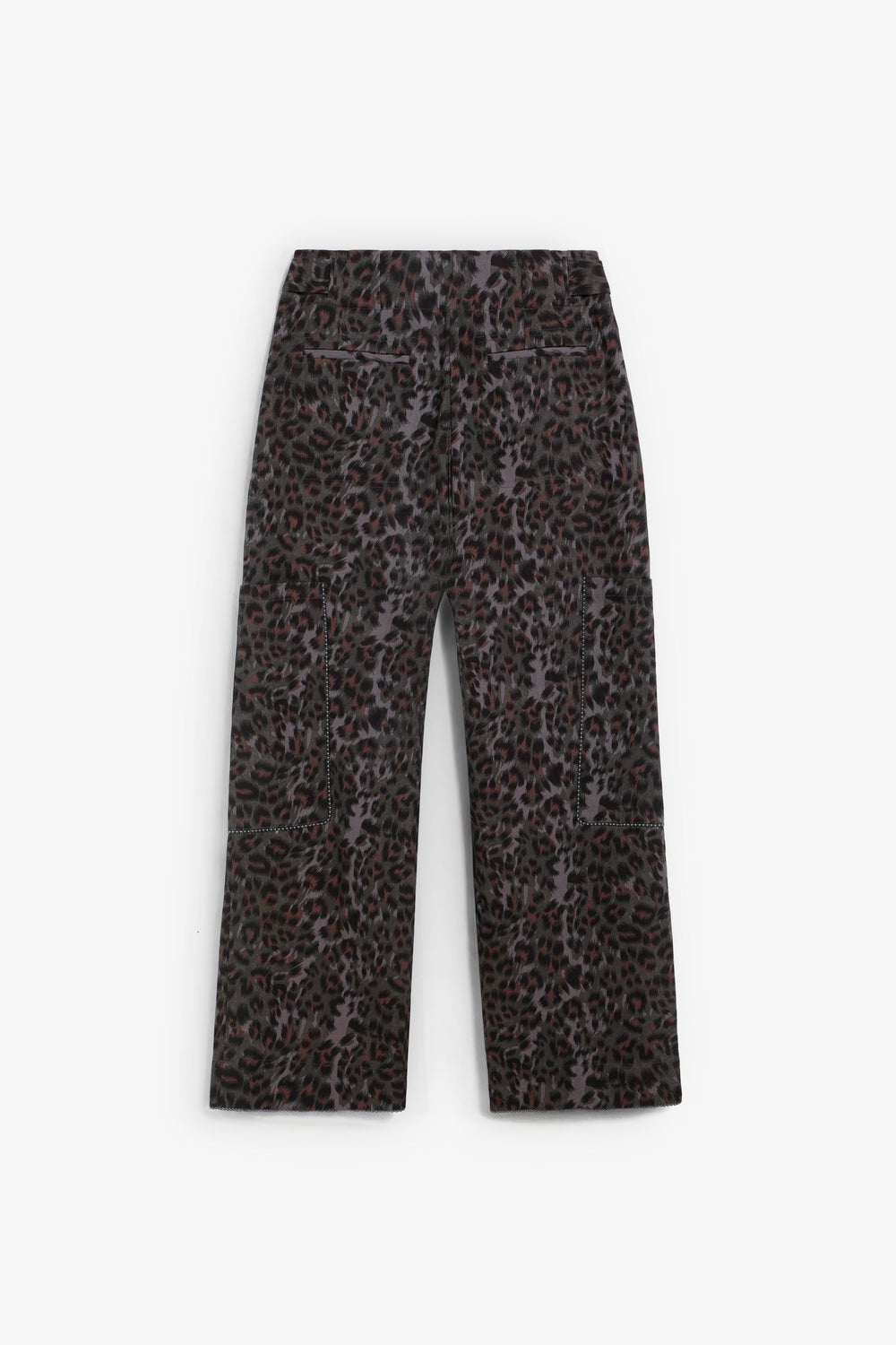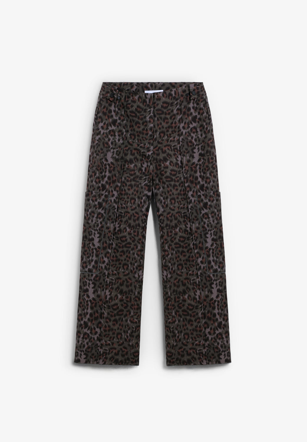 Animal print trousers. Side zip fastening. Cargo style pockets at the sides. Details on the main seams. Adjustable hip buttons.