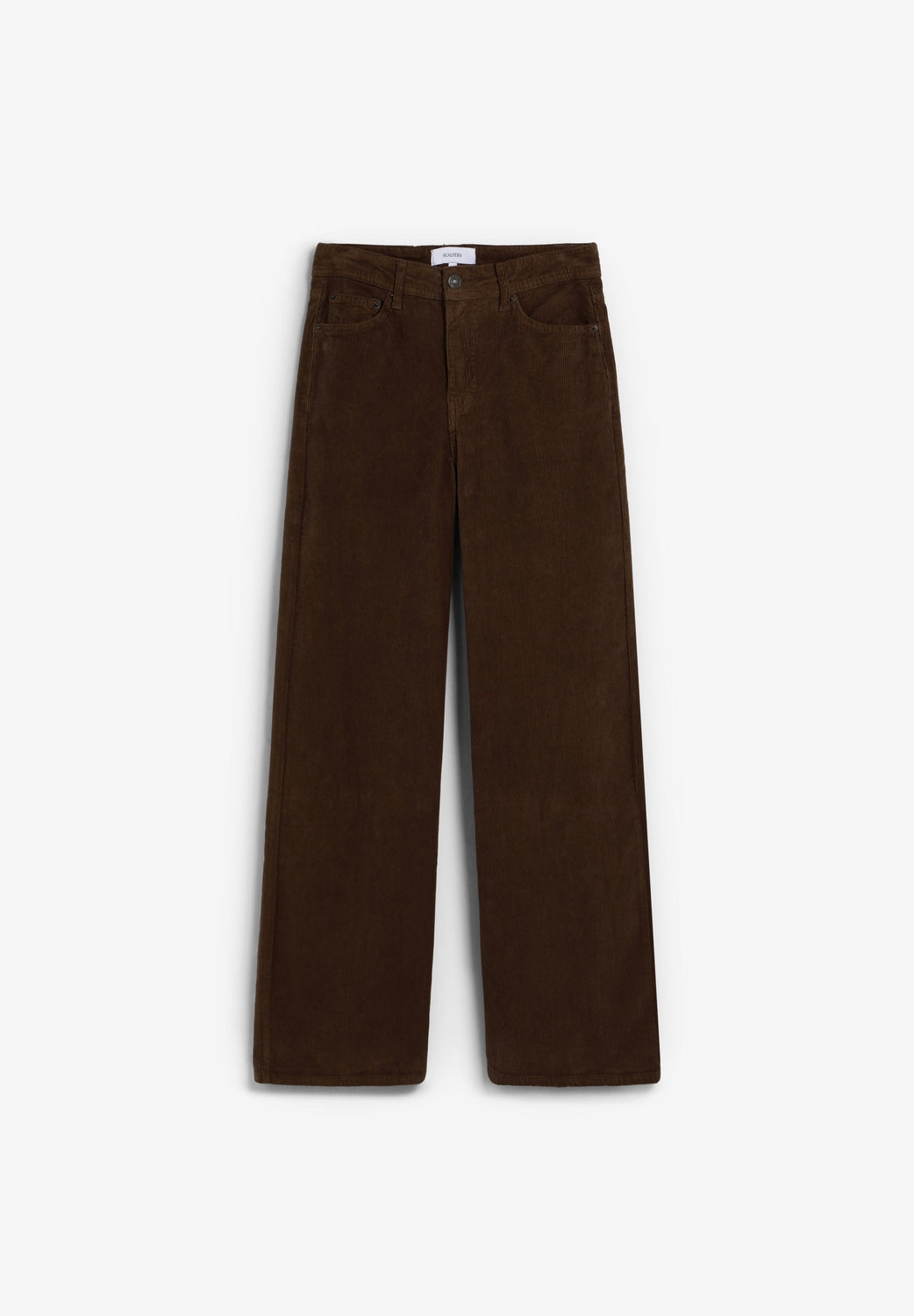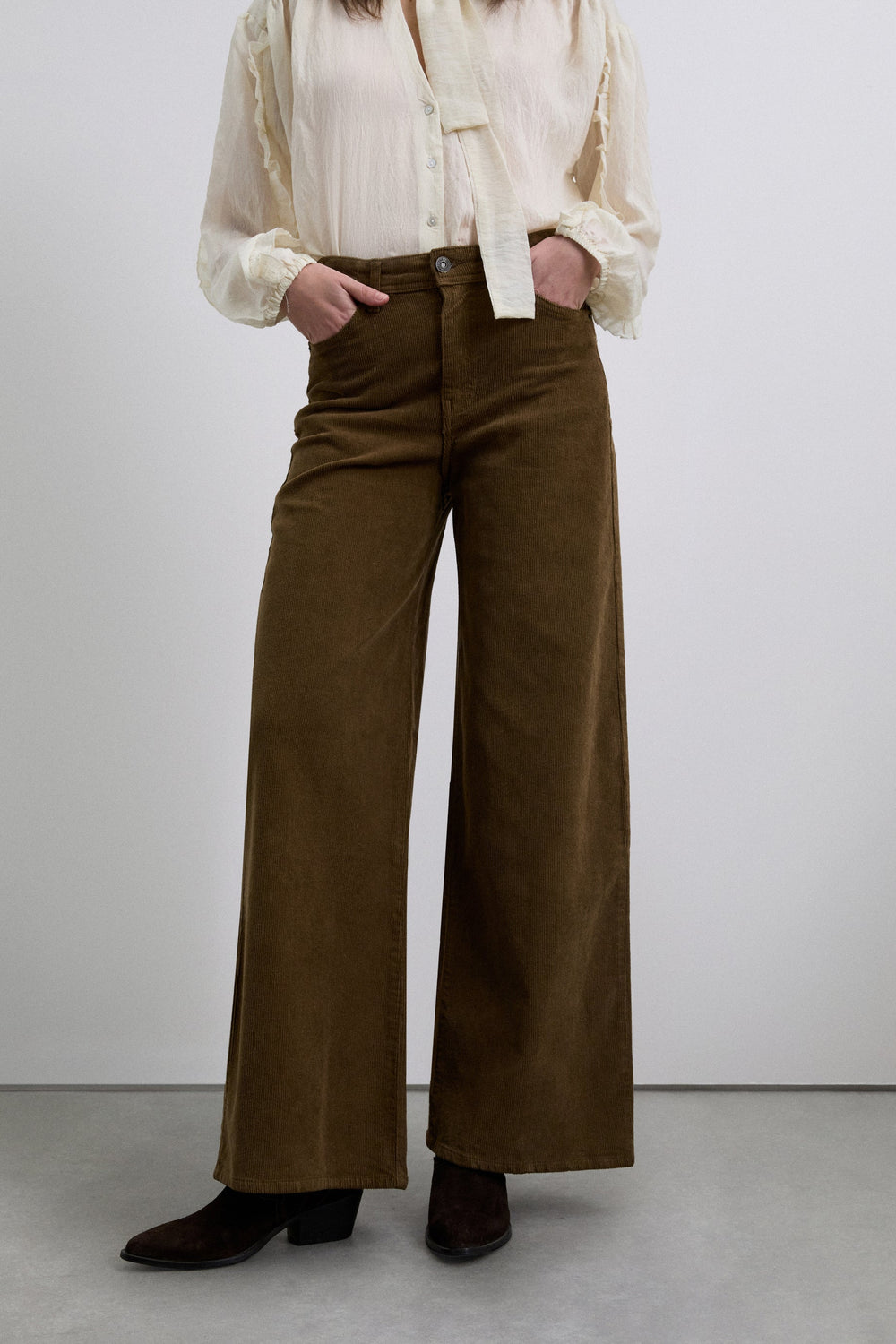 Trousers made of a cotton blend. Mid-rise and straight cut. Zip and button fastening. Front and back pockets.