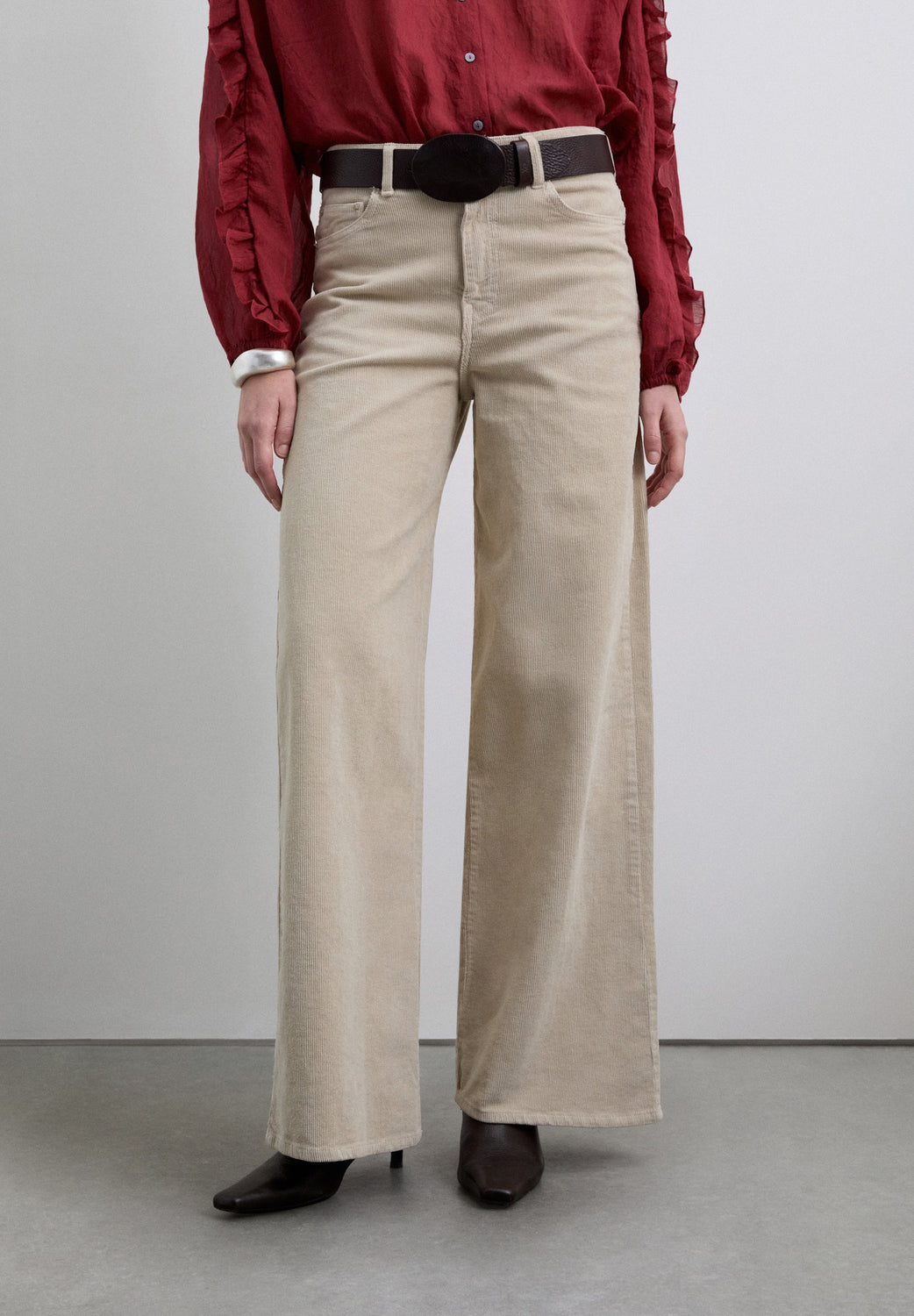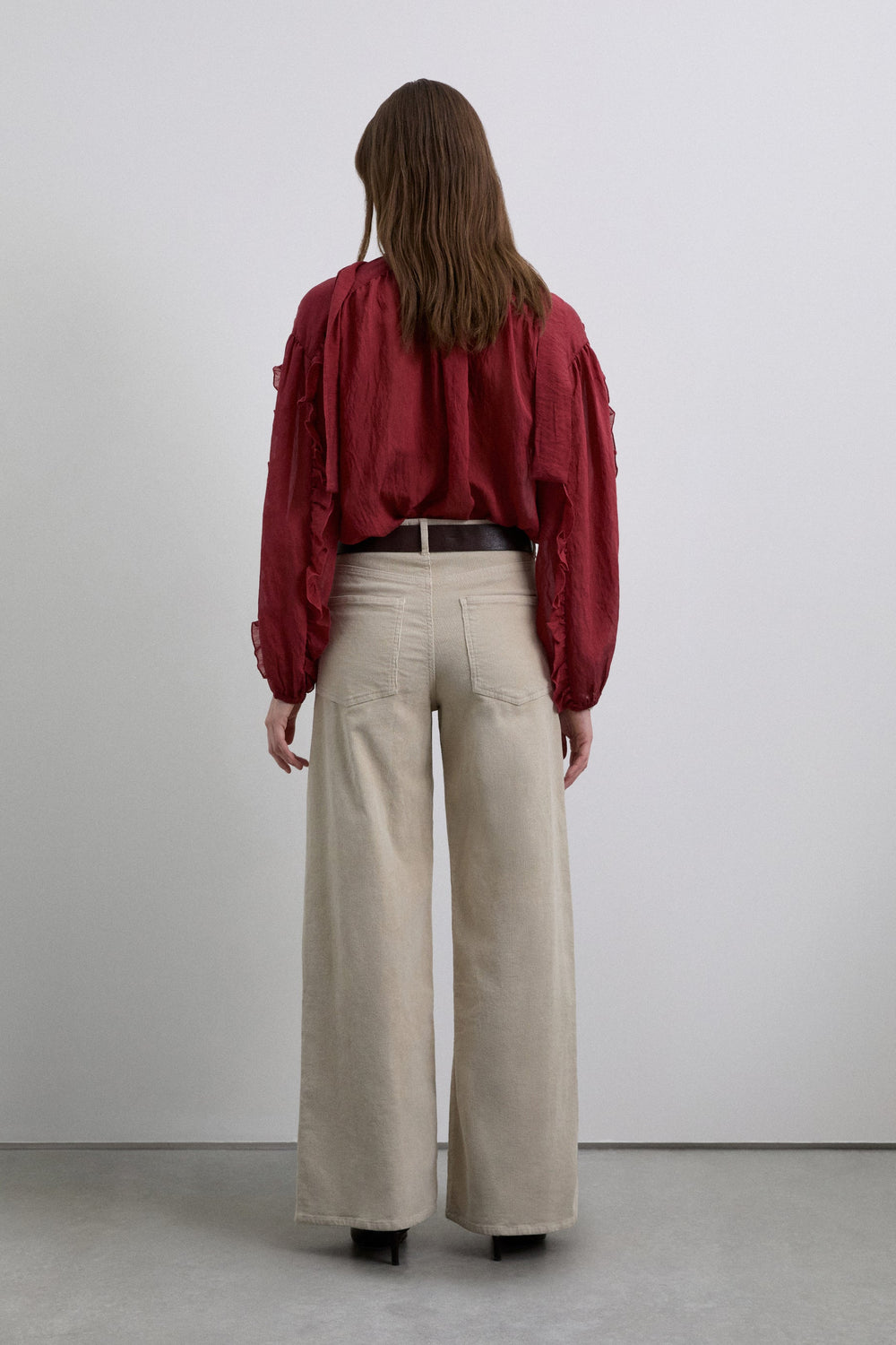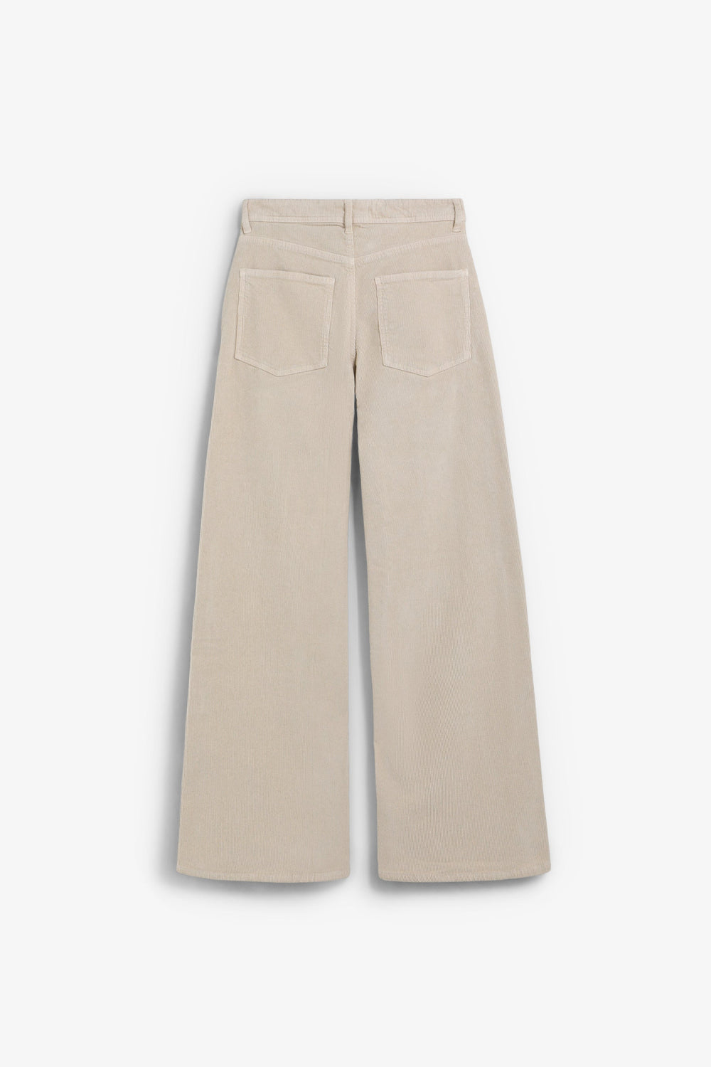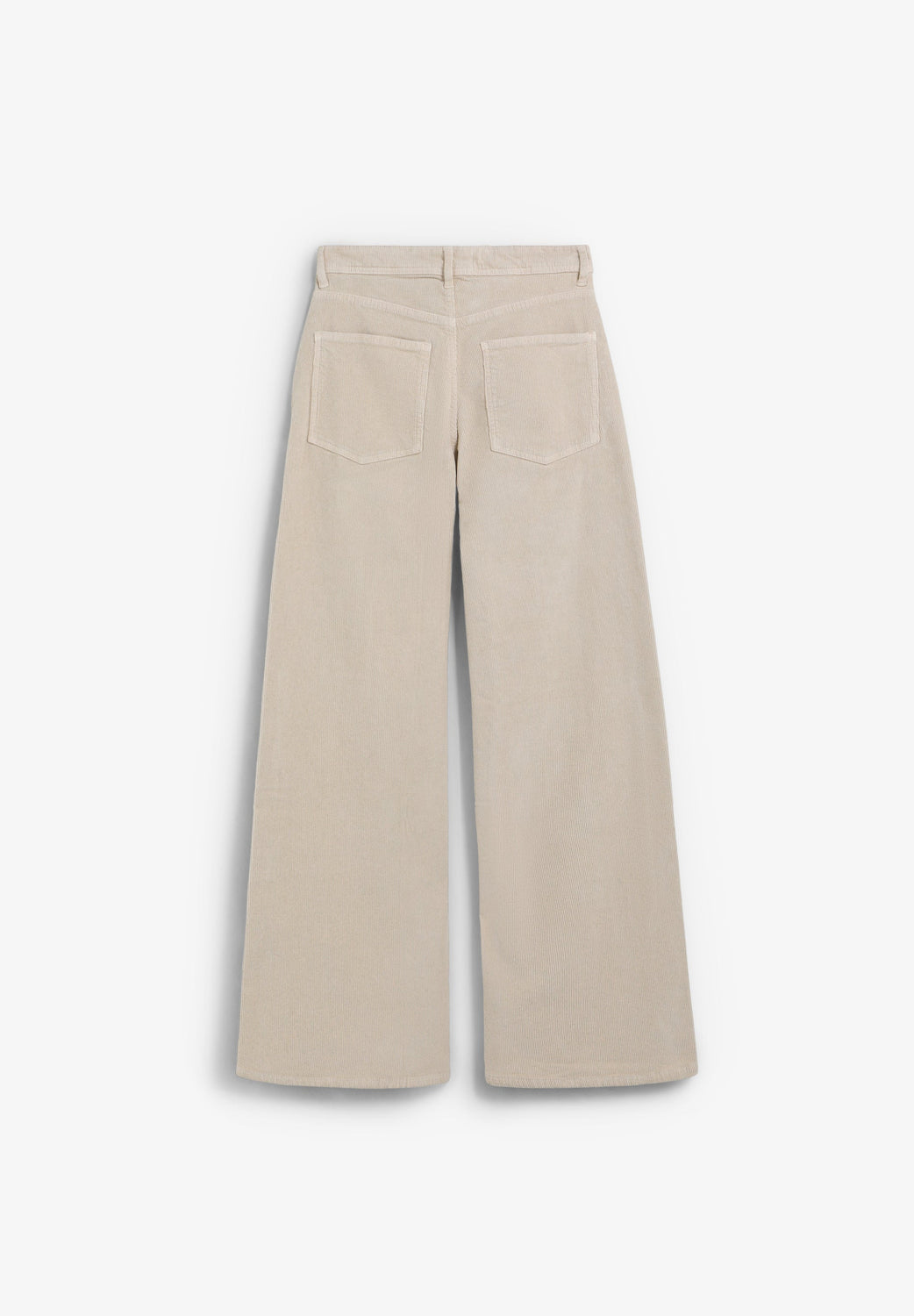 Trousers made of a cotton blend. Mid-rise and straight cut. Zip and button fastening. Front and back pockets.