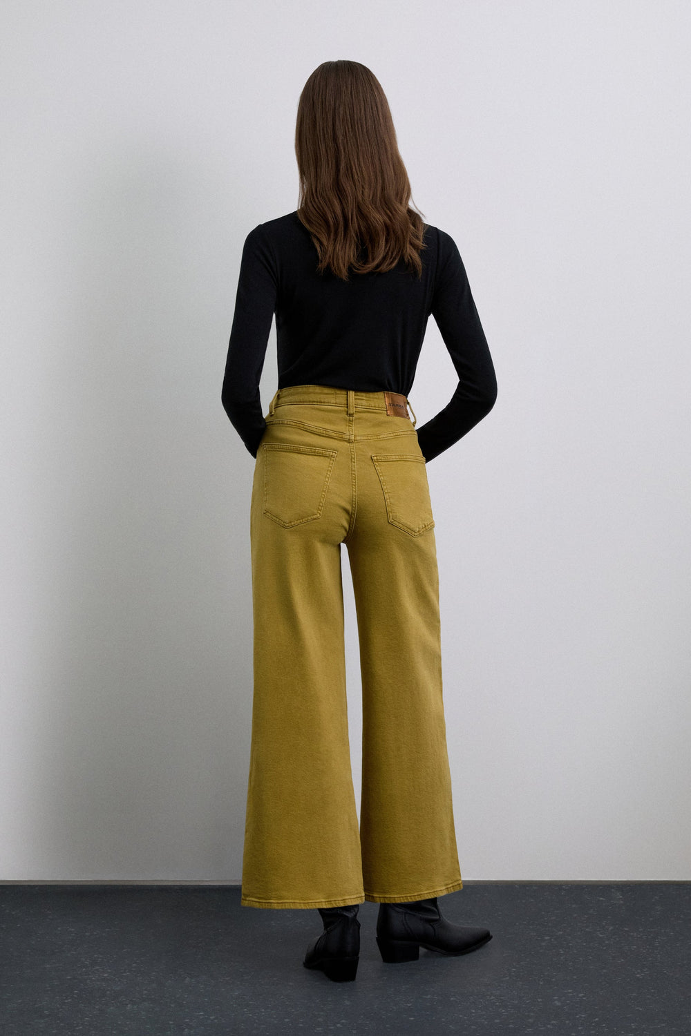Jeans made of cotton and elastane. Stud detailing on the front. Culottes with high waist and zip and button fastening. Front and back pockets.