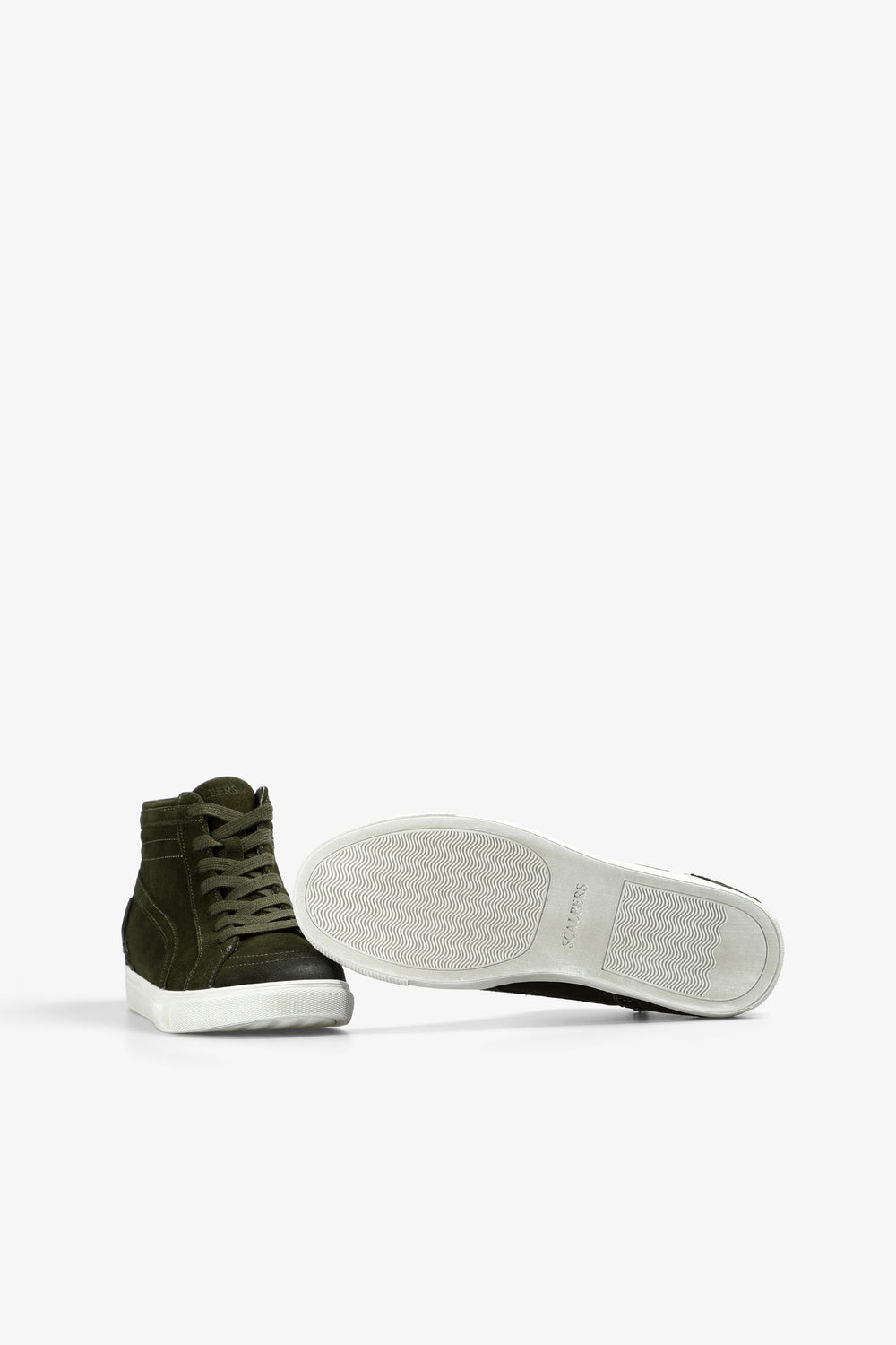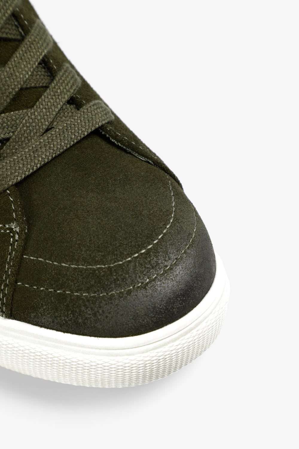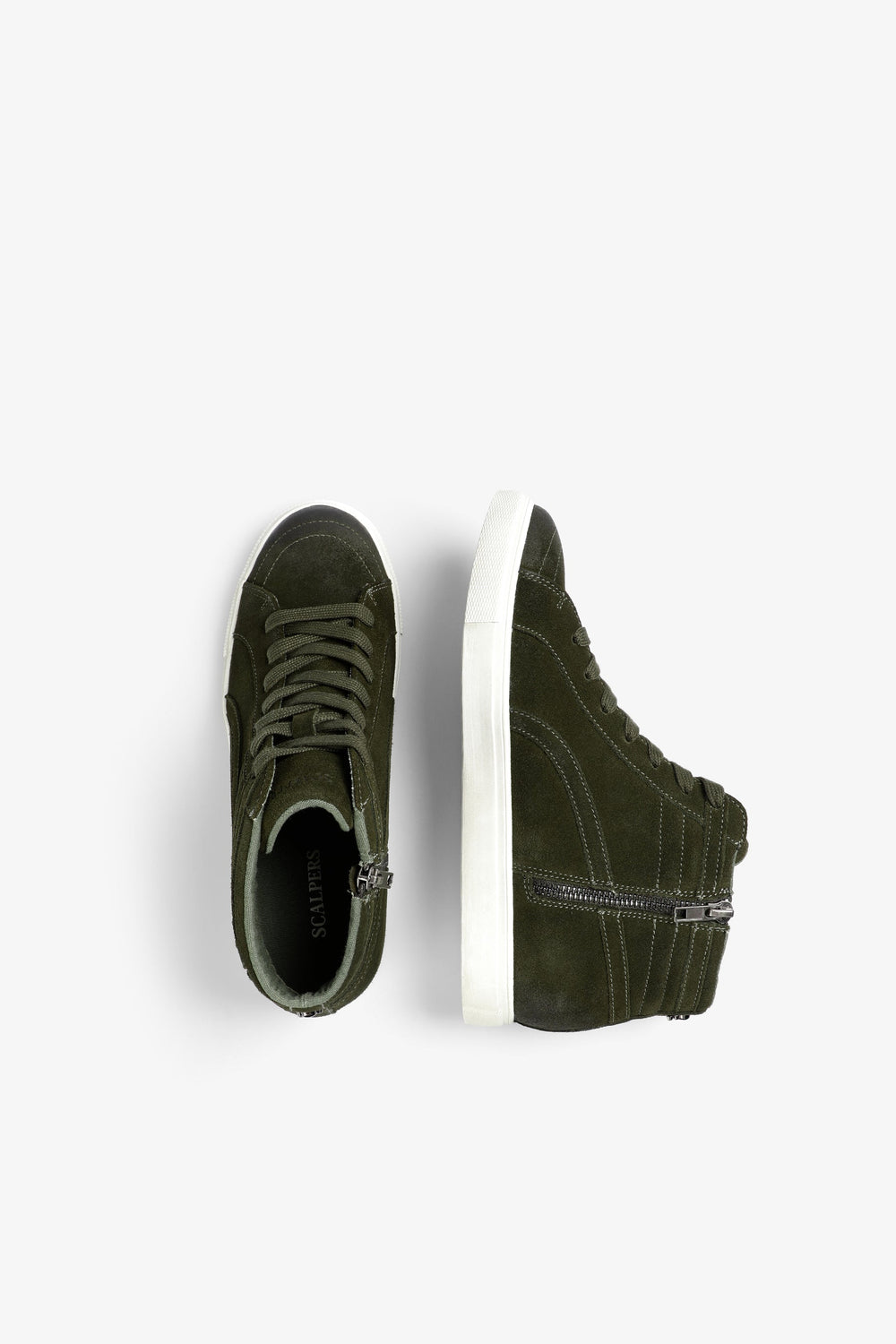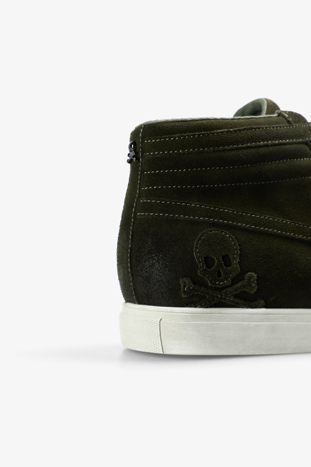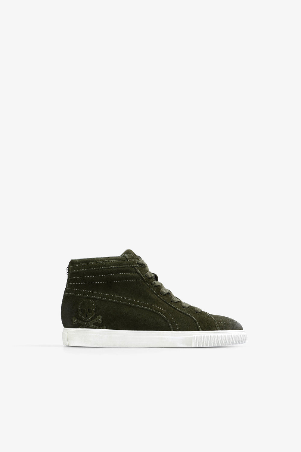 High top sneakers made of 100% leather. Matching embroidered skull on side. Matching lace-up fastening and side zip. Tonal stitching detail. Contrast sole made of 100% cotton. Matching embroidered logo detail on the tongue.