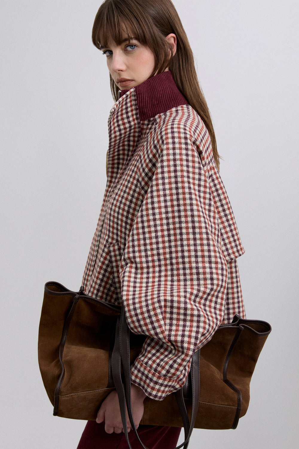 CHECKED BOMBER JACKET WITH CORDUROY COLLAR