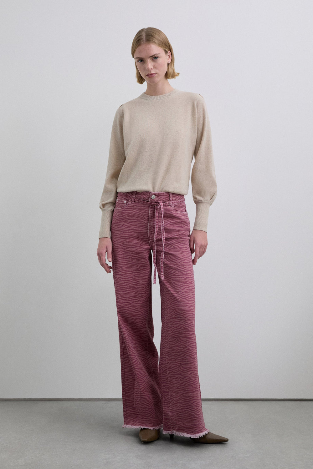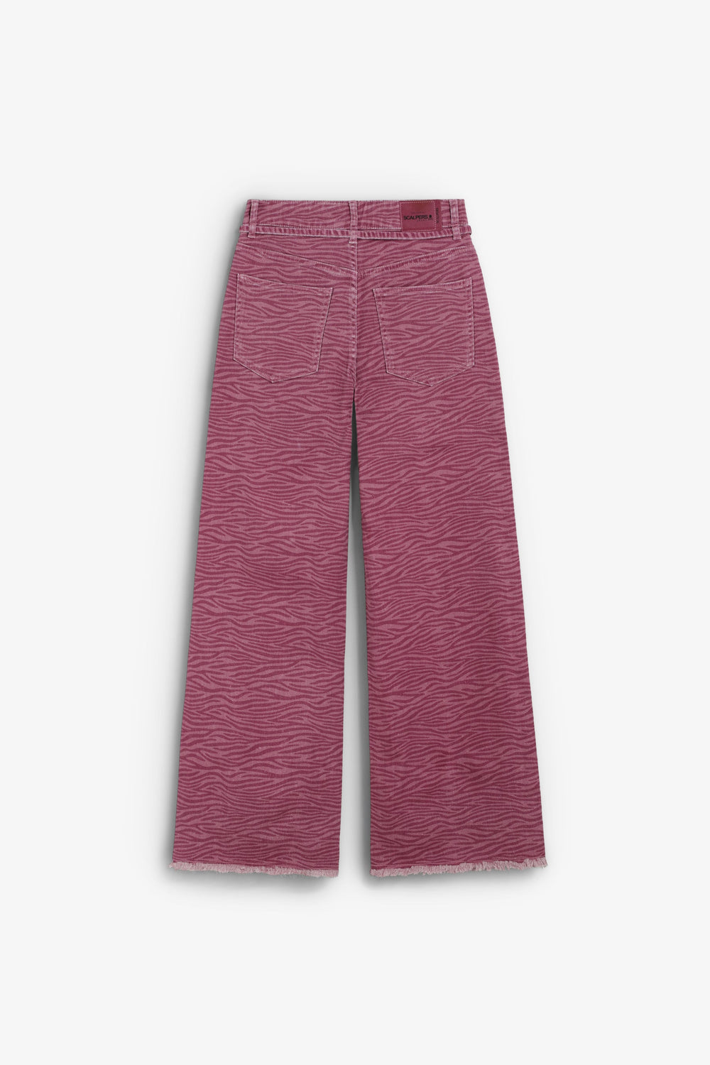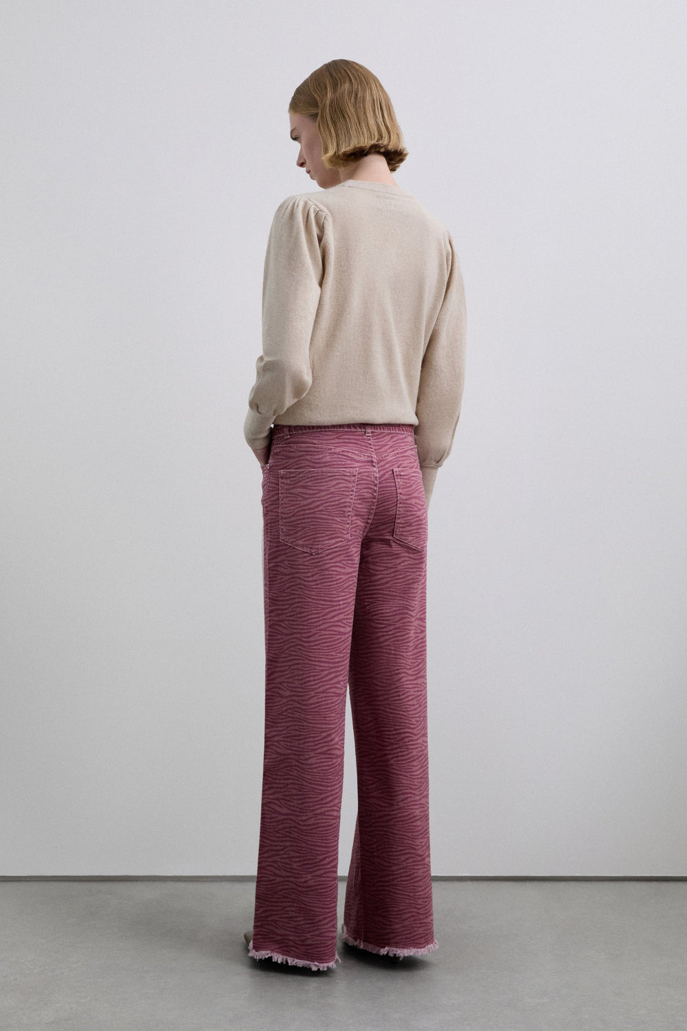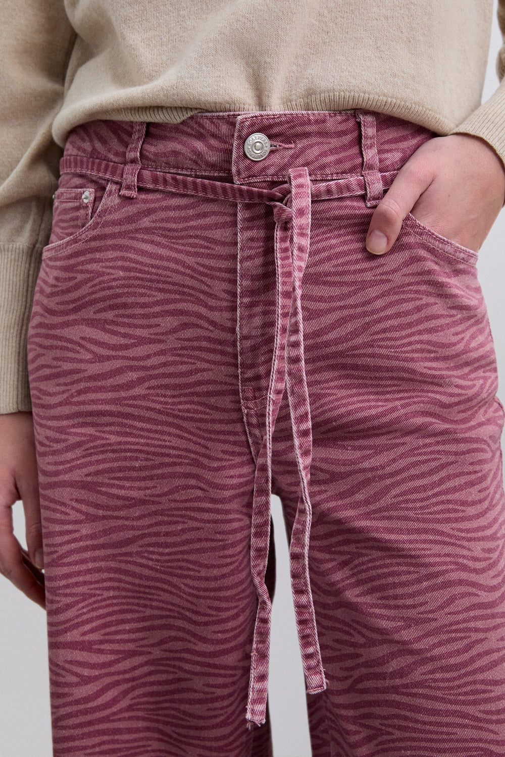 Trousers made of 100% BCI cotton. Animal print. Full length. Central seams. Faded effect. Matching drawstring waist. Side and back pockets.