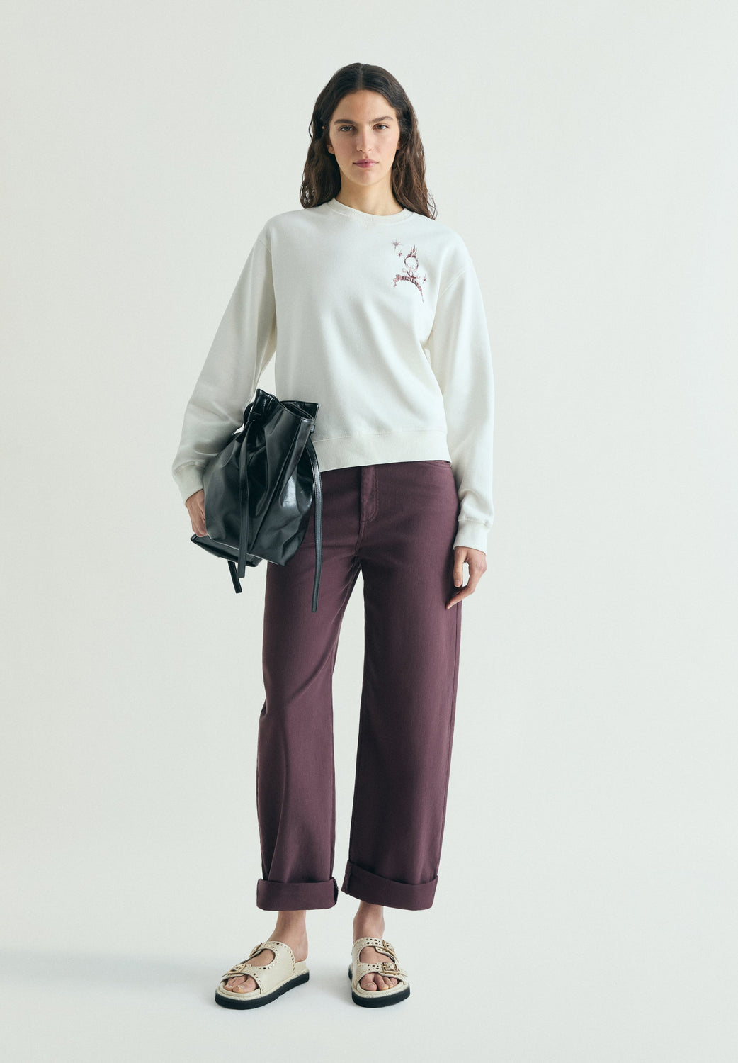Sweatshirt made of 100% cotton. Print detail on the front. Ribbed sleeves and hem.