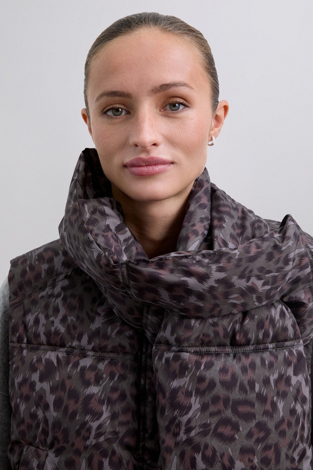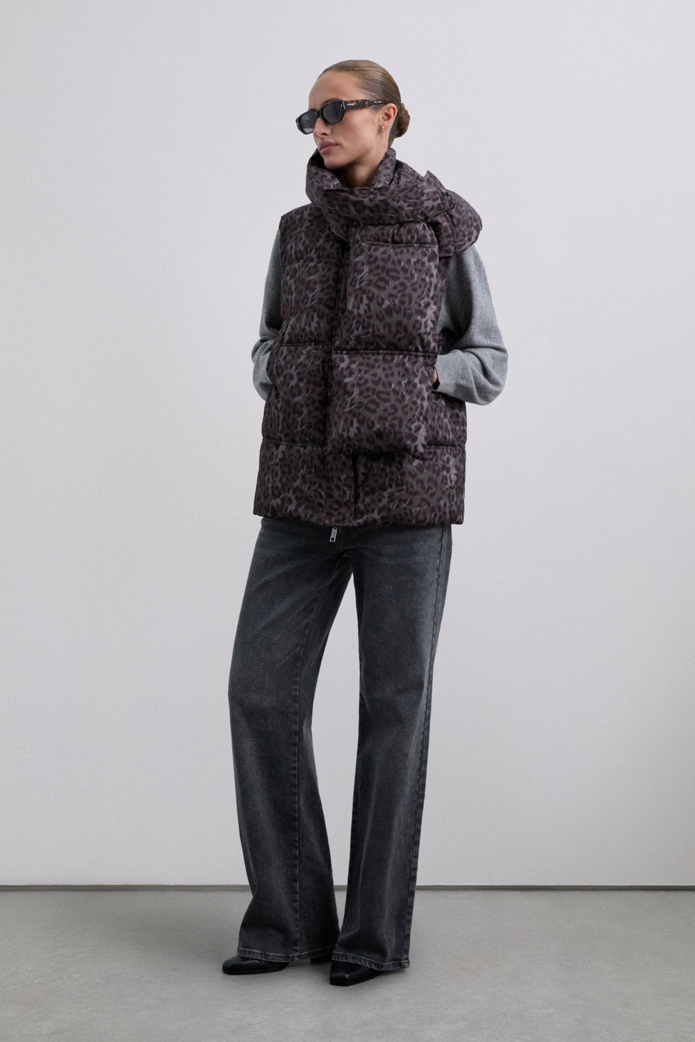 ANIMAL PRINT GILET WITH DETACHABLE SCARF