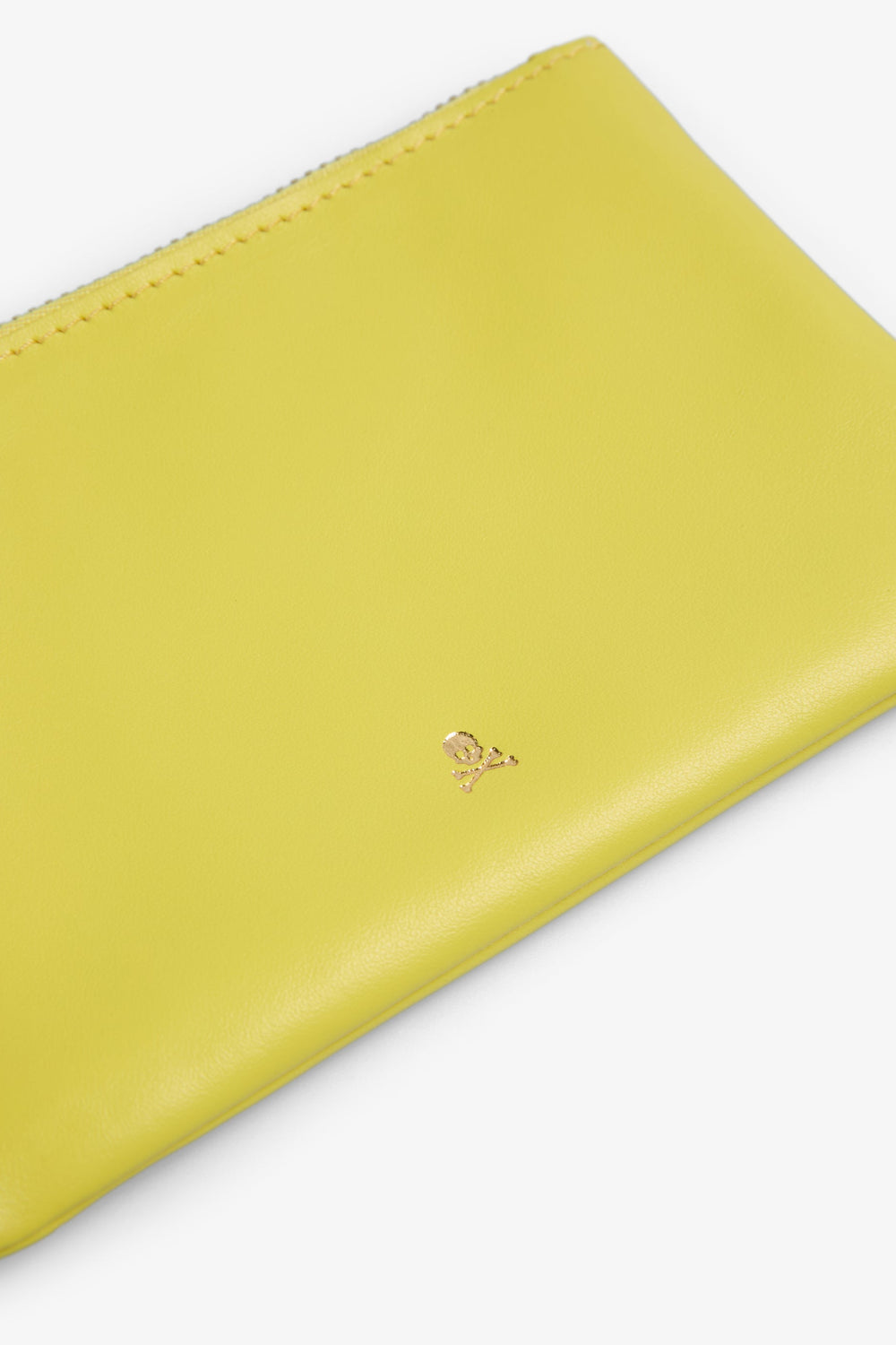 Coin purse crafted in fluorescent leather. Zip fastening and contrasting metallic embossed logo.