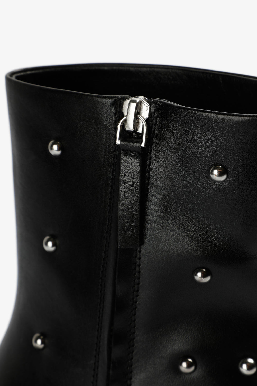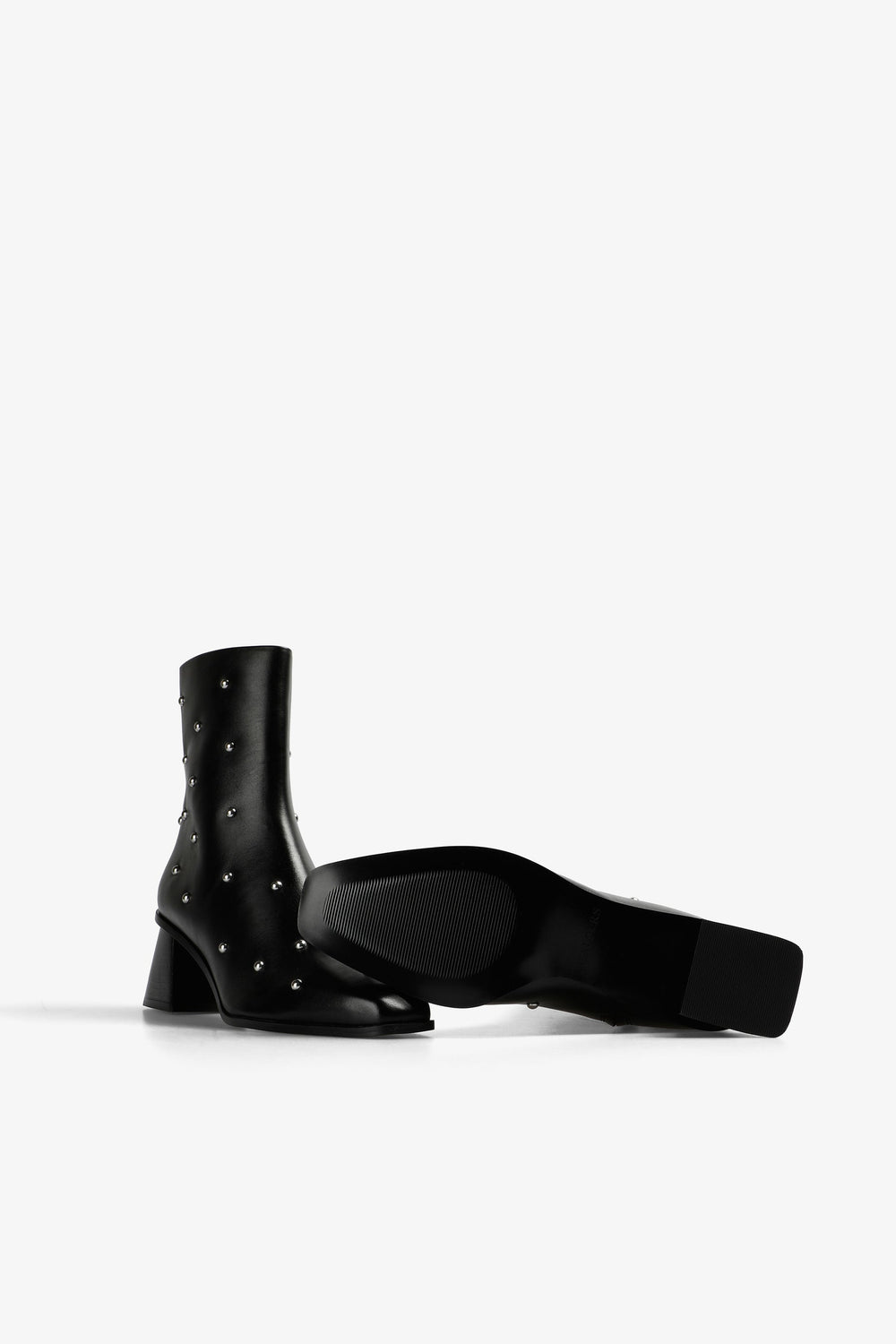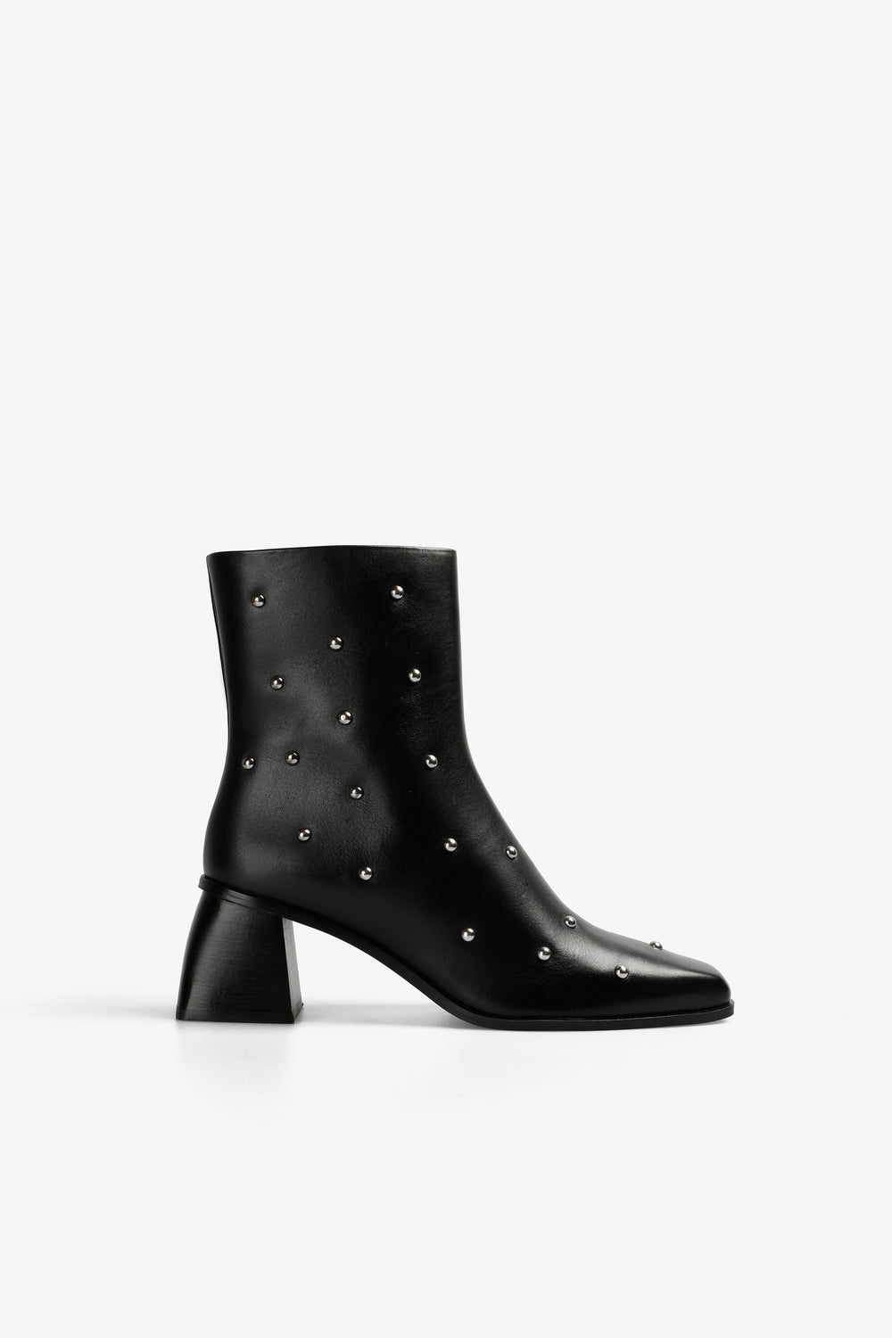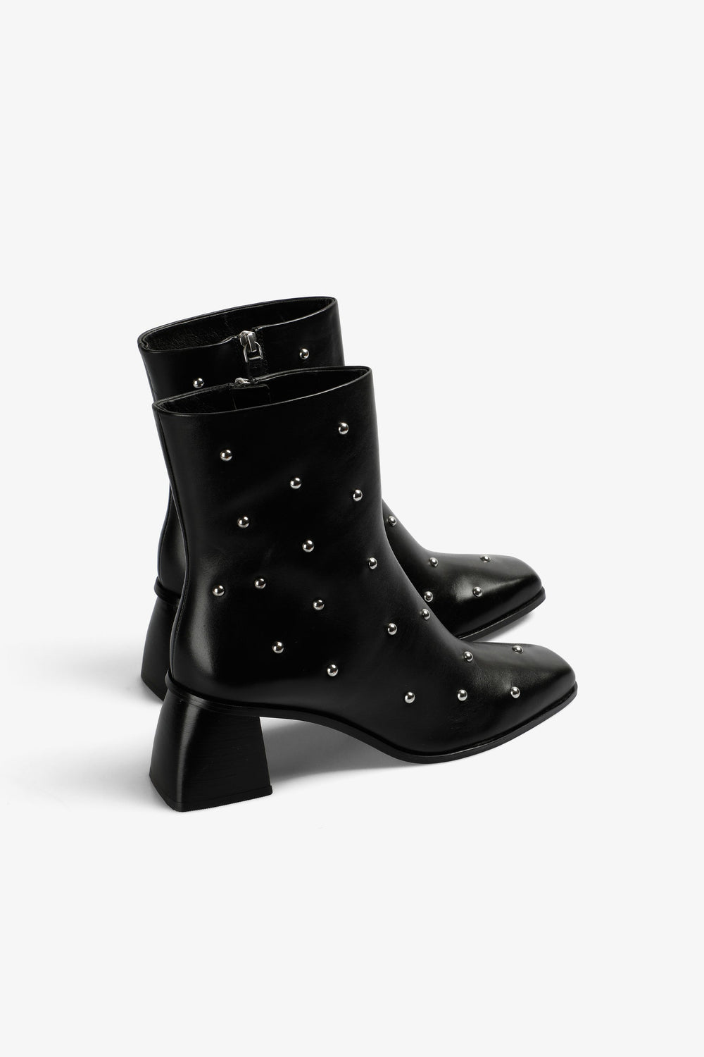 Heeled ankle boots with stud detail. Made of 100% leather. Ankle length. Side zip fastening