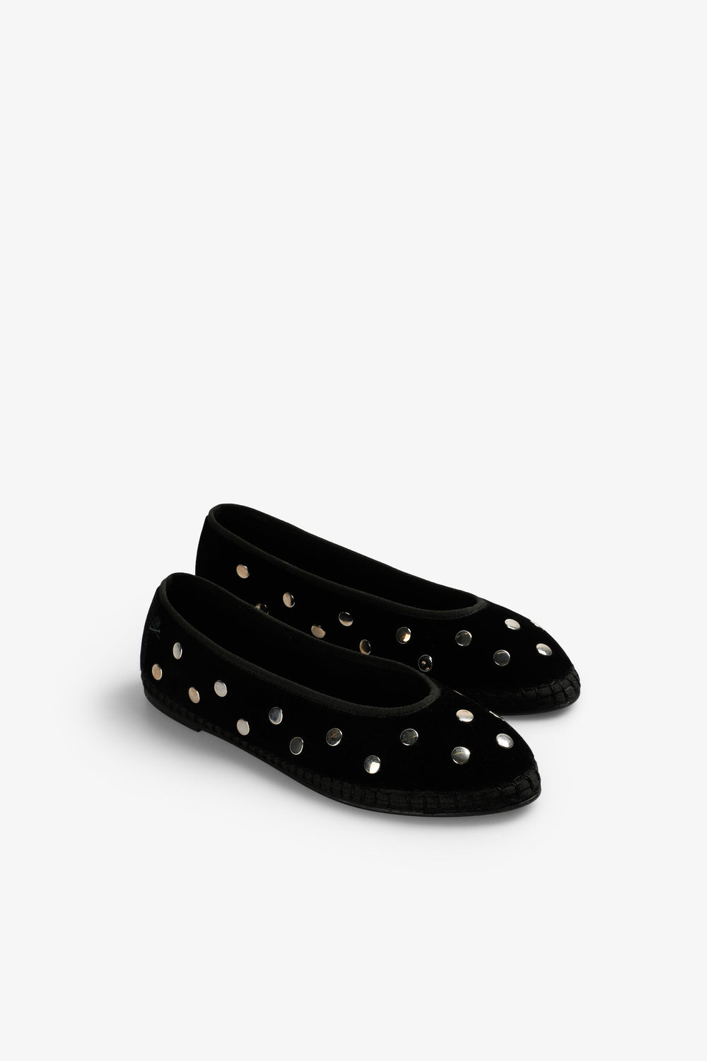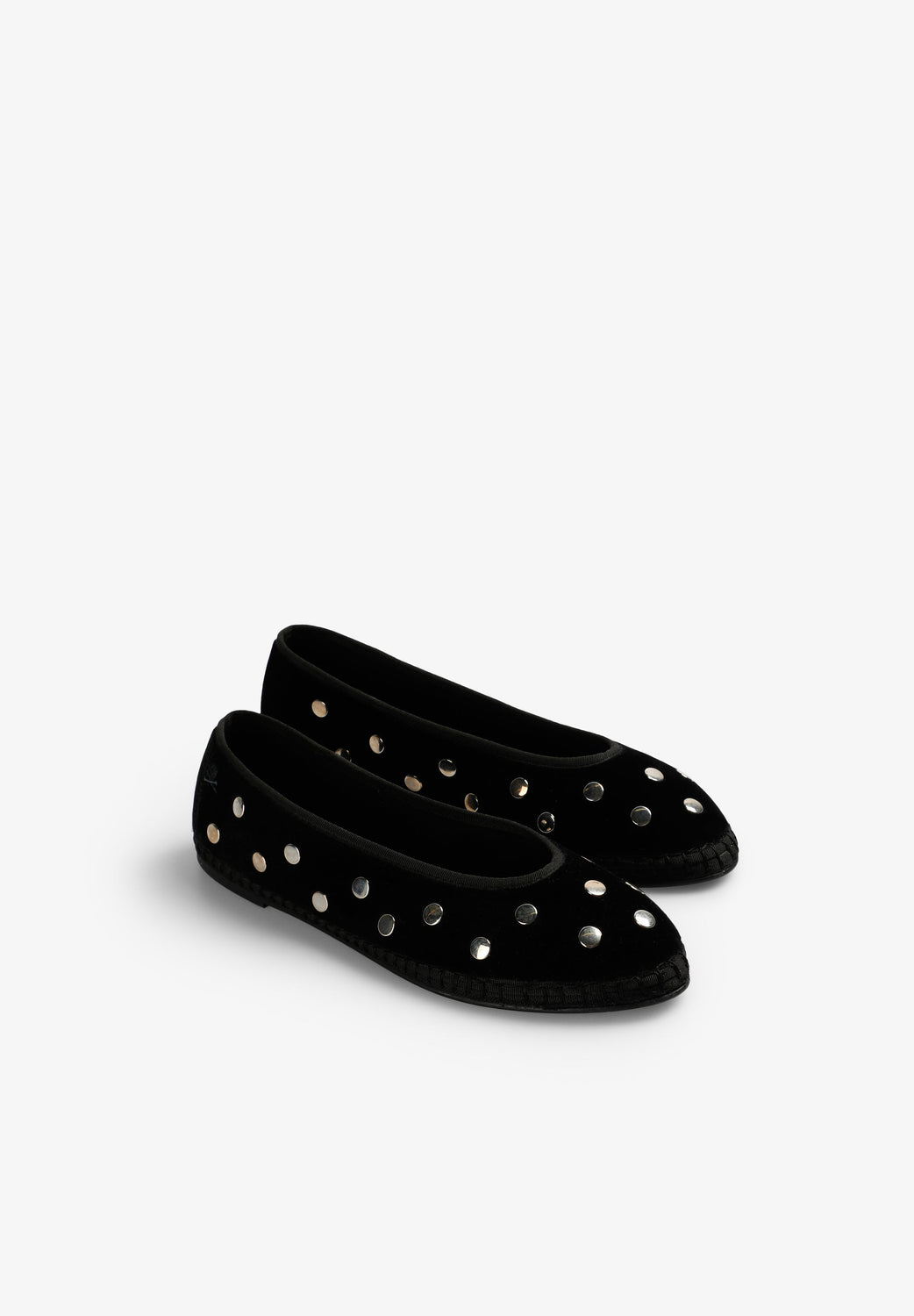 Ballet flats made of 100% BCI cotton. Velvety finish. Studs. Cotton lining. Matching embroidered logo detail.