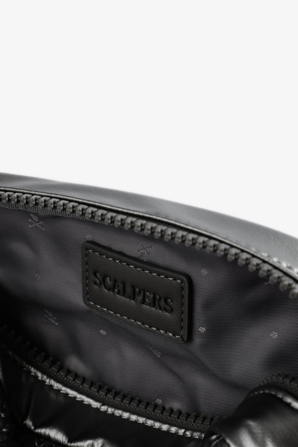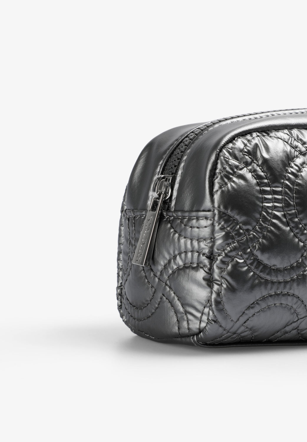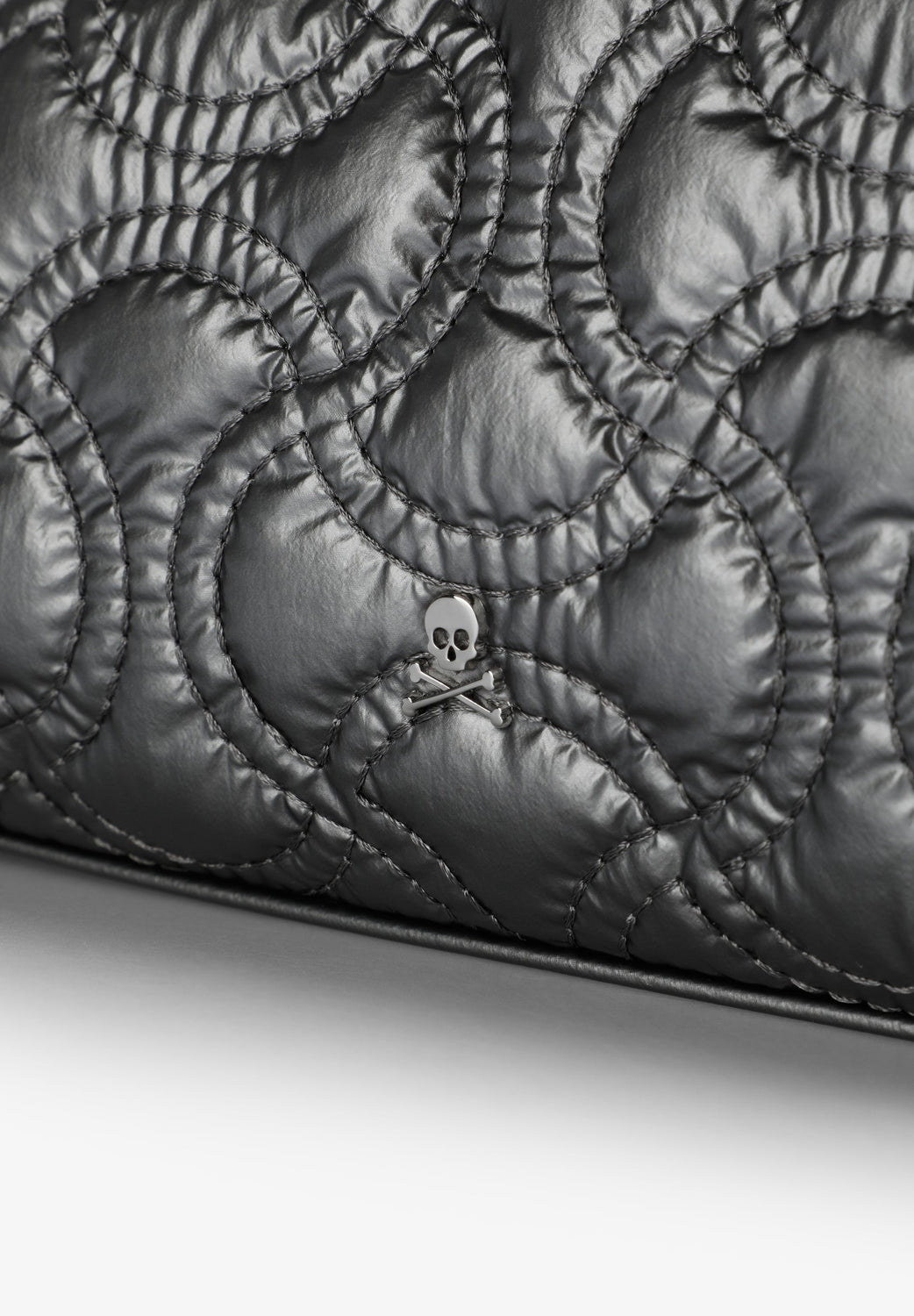 Quilted toiletry bag. Zip closure. Inner lining with skull print. Logo detail on the inside and metallic skull patch on the front.