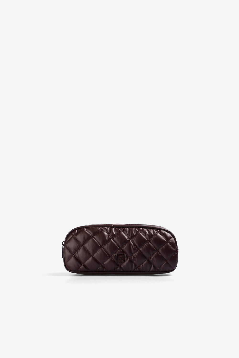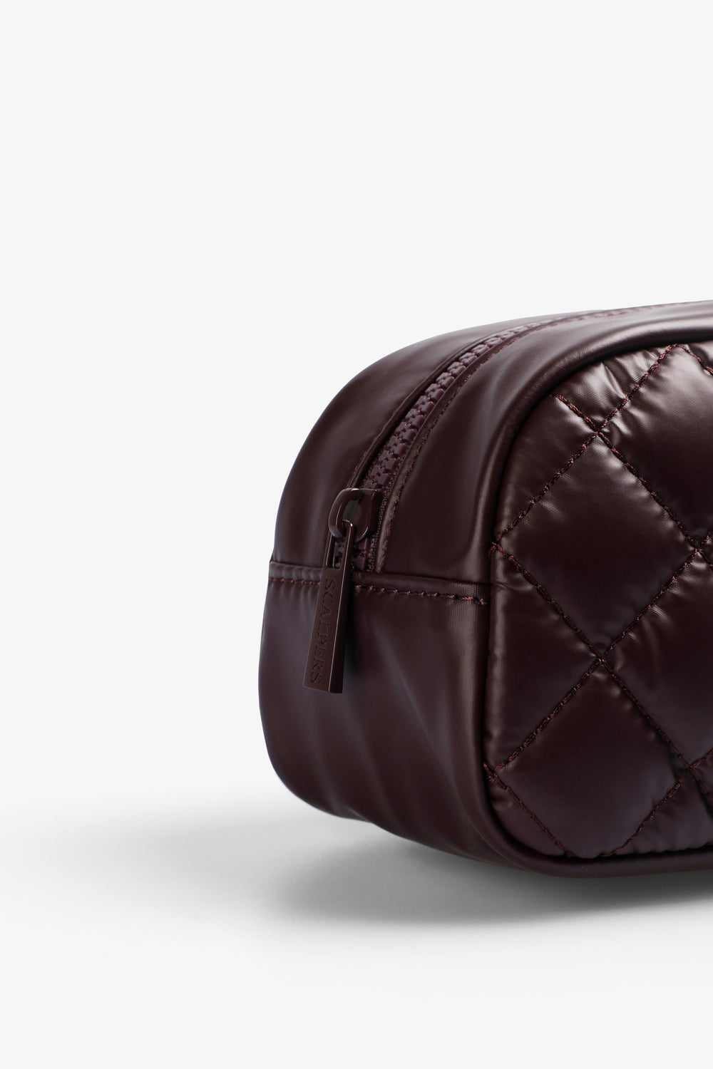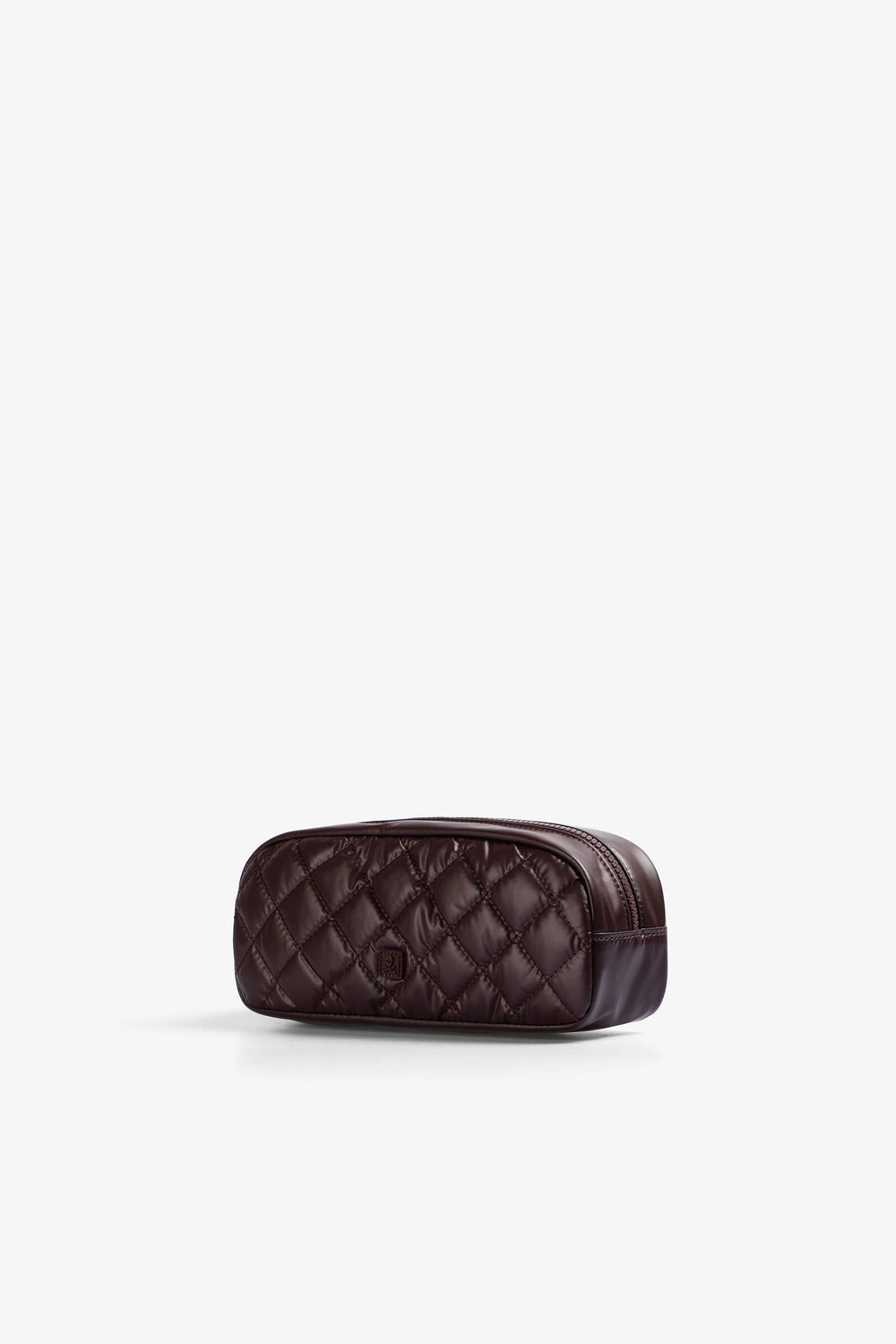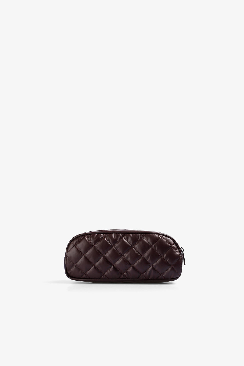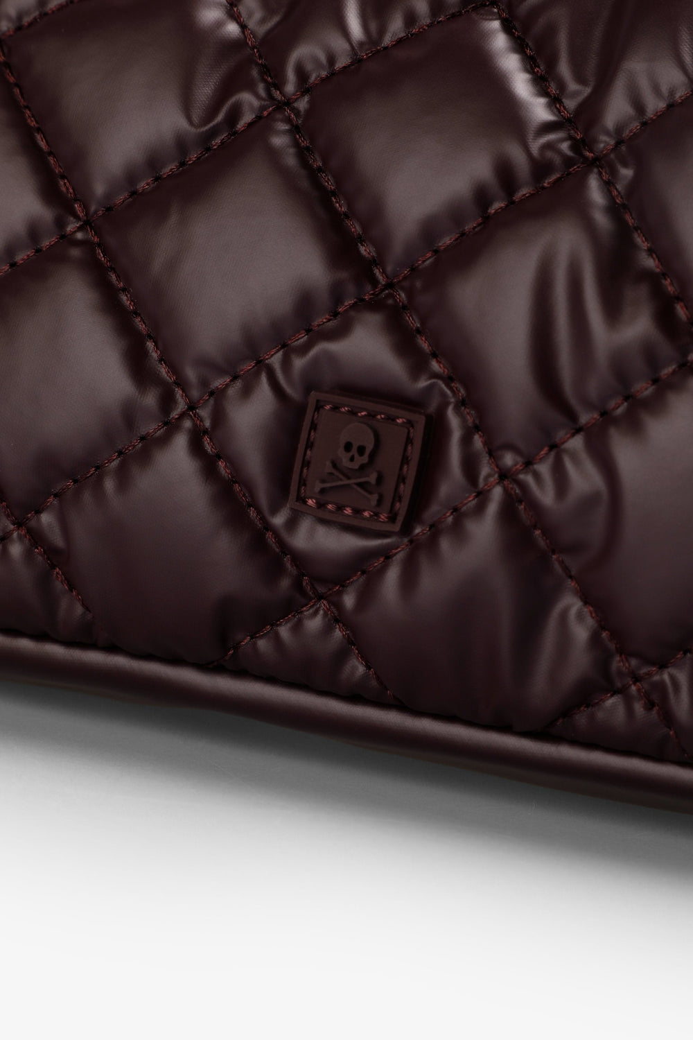 Quilted toiletry bag. Zip closure. Inner lining with skull print. Logo detail on the inside and rubberised patch with metallic skull on the front.