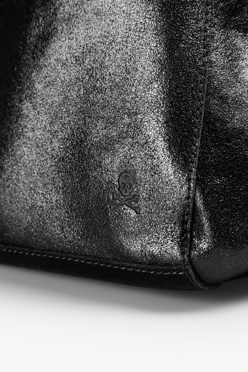 Tote bag made of 100% suede with metallic finish. Reverse side leather inside with matching zip-up wallet.