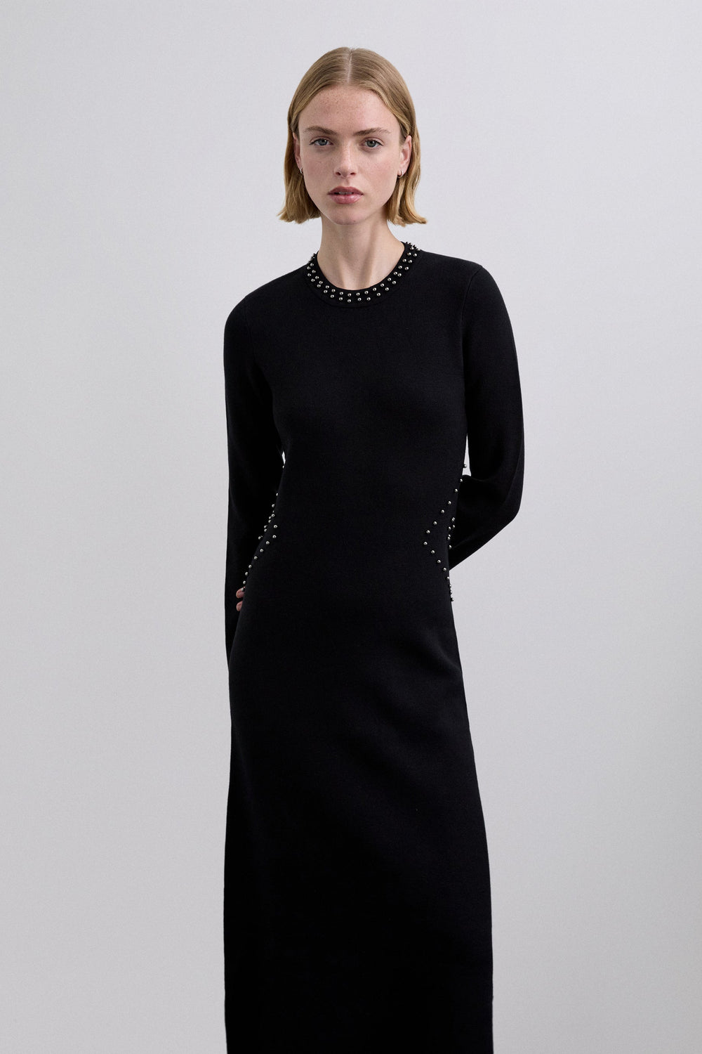 KNIT DRESS WITH STUDS AND SLIT