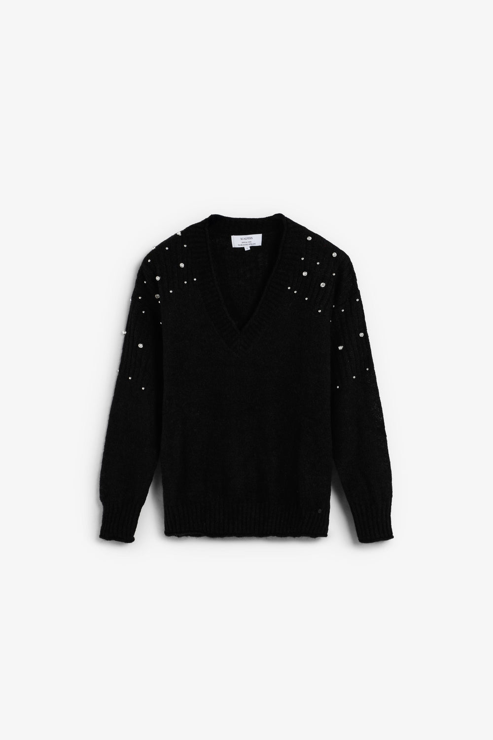 Sweater made of a knitted wool blend. Regular fit. V-neck. Long sleeves with ribbed cuffs. Studded detailing on the shoulders and sleeves