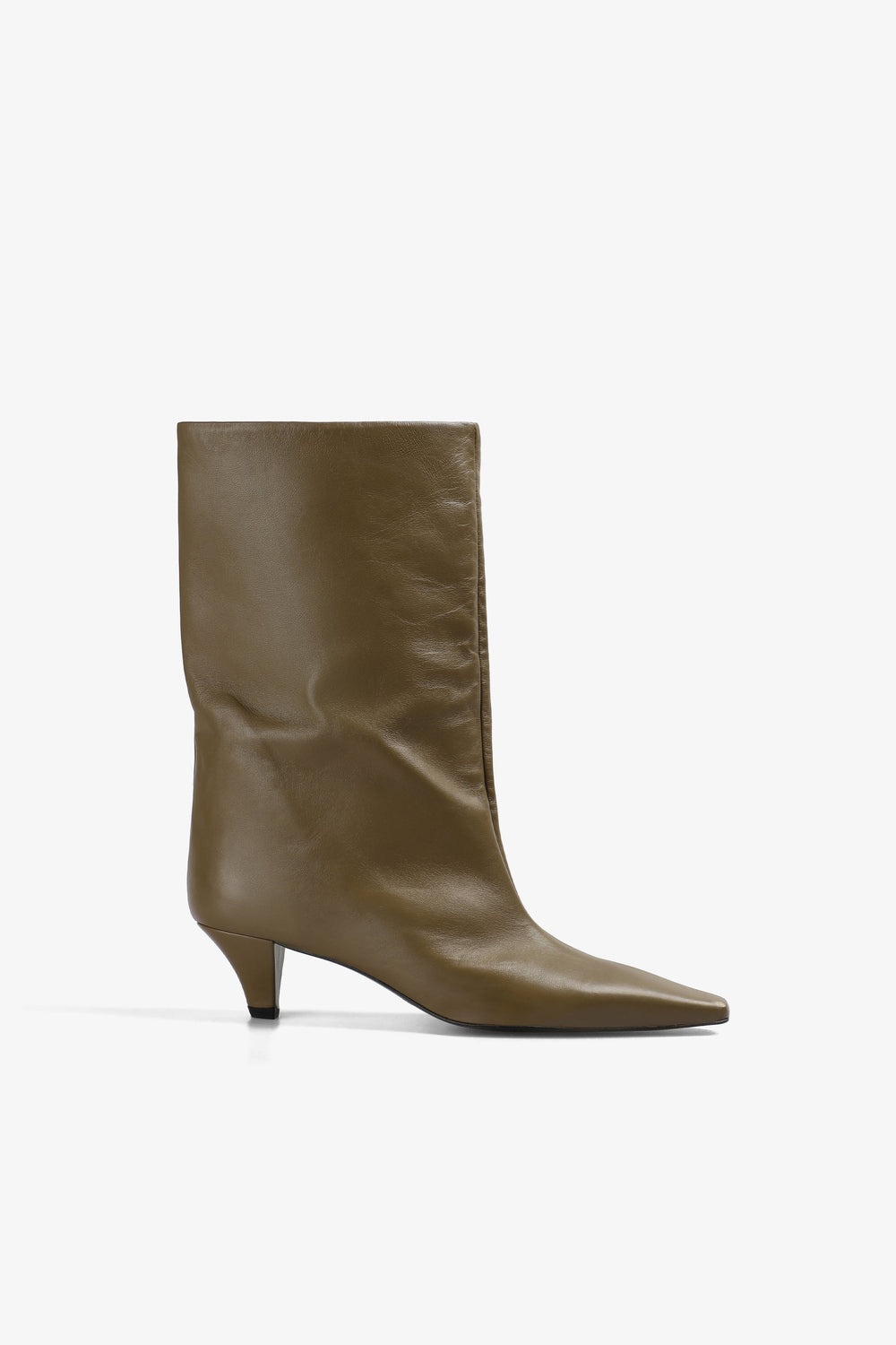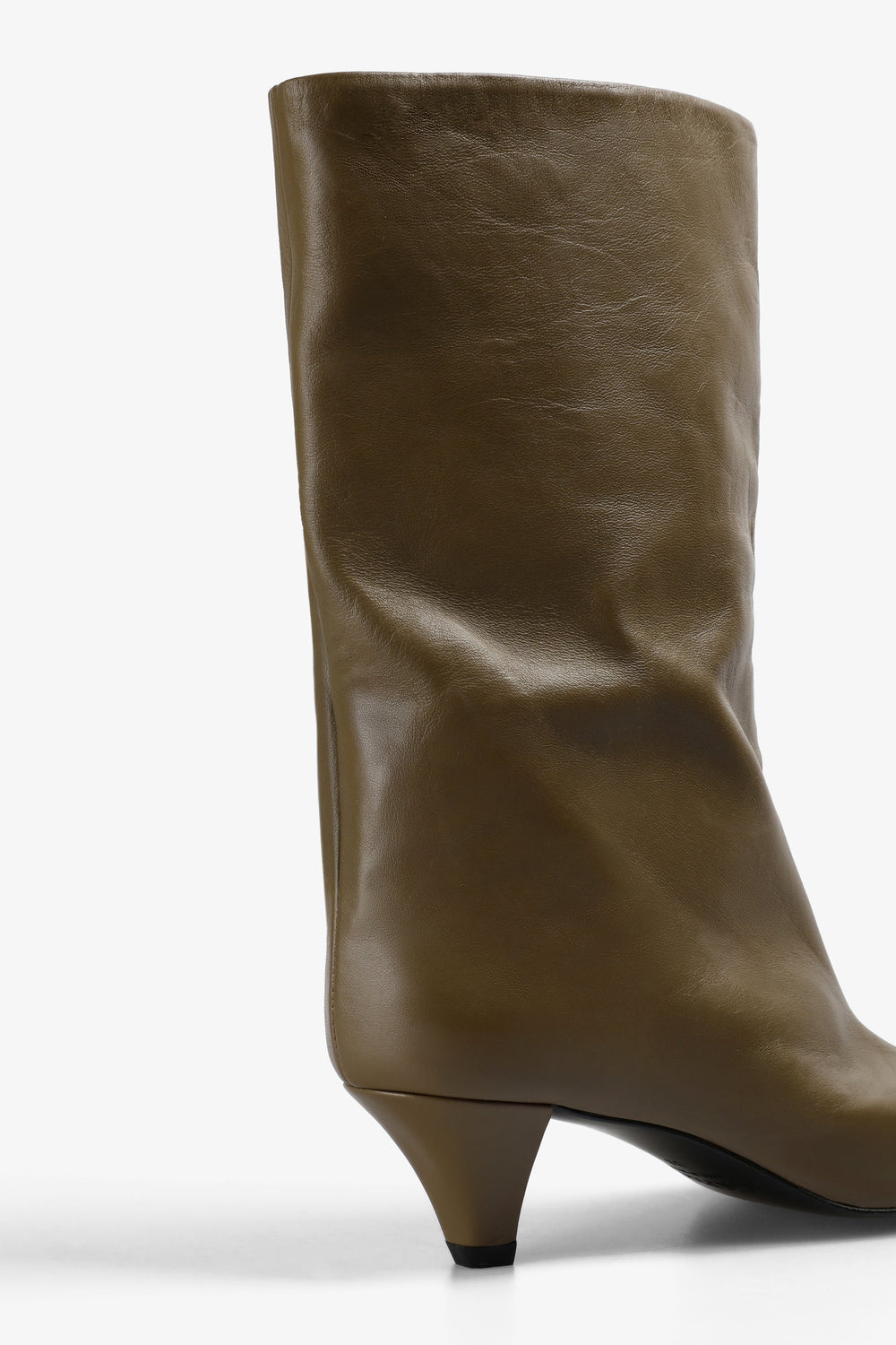 Boots made of 100% leather. Gathered leg detail. Medium Kitten heel. Pointed finish.