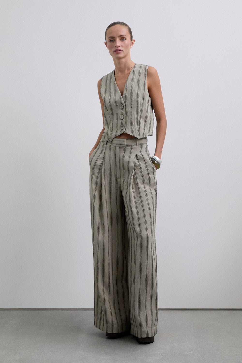 STRIPED CULOTTES WITH DARTS