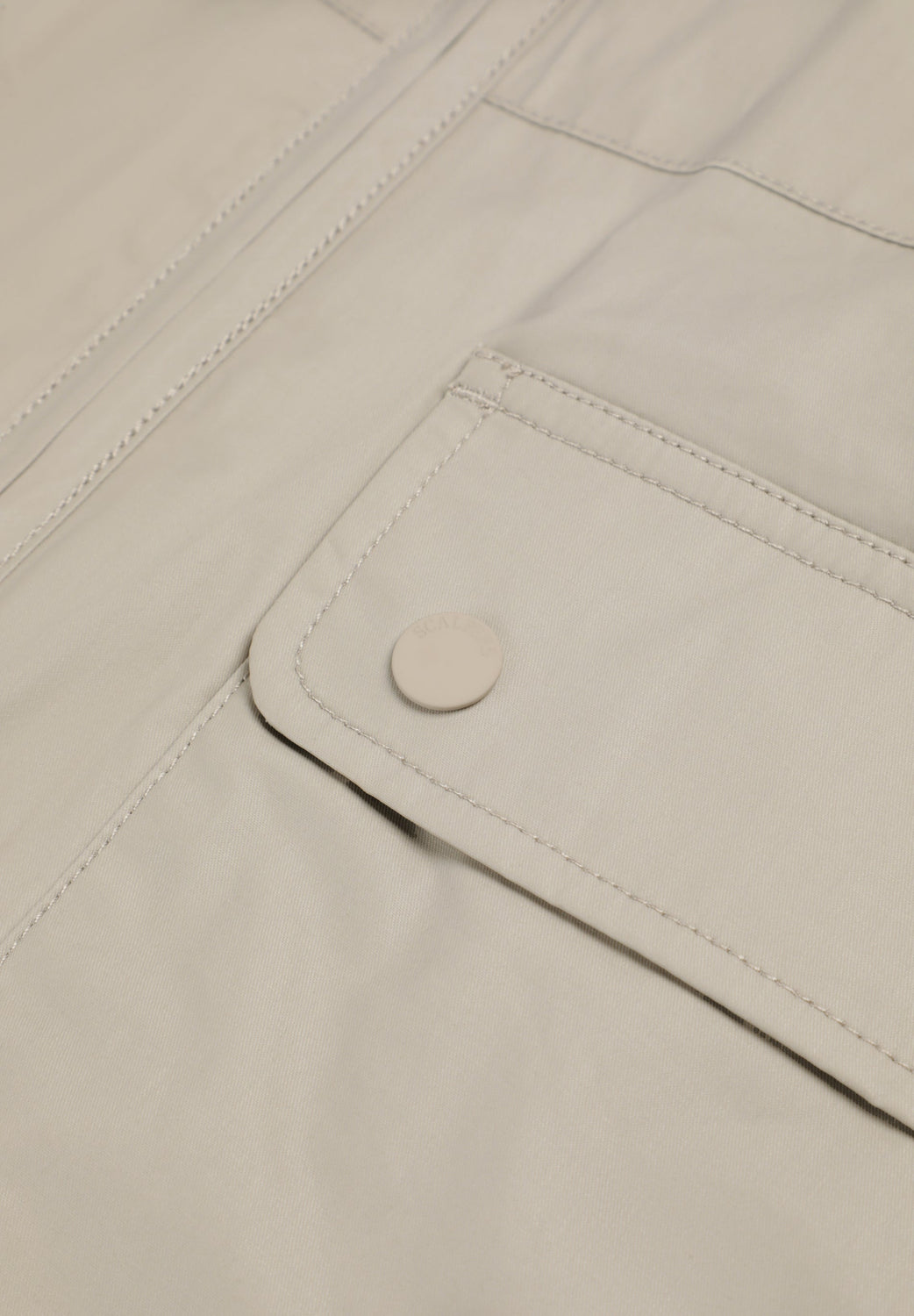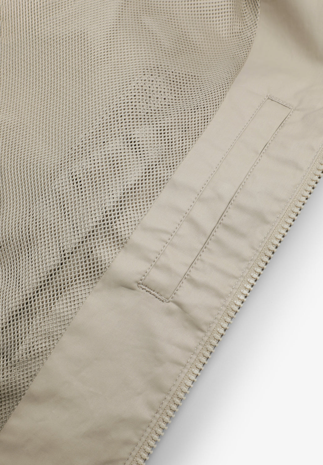 Jacket made of 100% BCI cotton. Integrated hood. Mesh lining. Elasticated cuffs. Front flap pockets with press-stud fastening. Side pockets. Inner pocket. Front zip fastening.