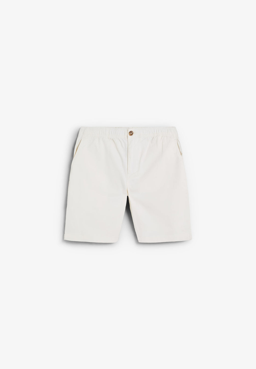 Bermuda shorts made of slightly stretchy cotton with inner drawstring. Button and zip fastening. Side slant pockets.