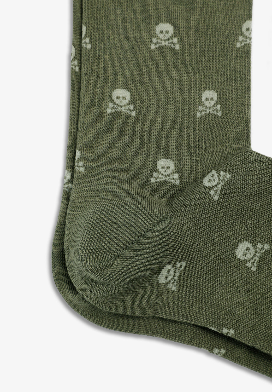 Socks made of an organic cotton blend. Skull print. Contrast logo detail. High-top.