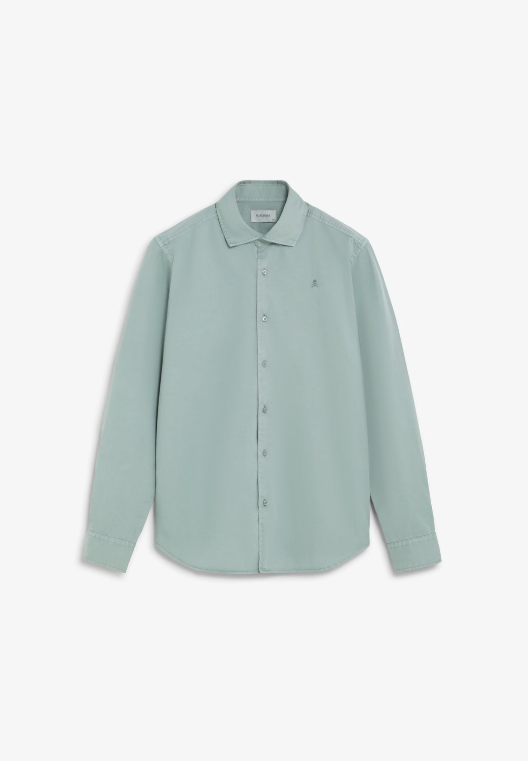 Shirt made of 100% BCI cotton. Regular fit. Italian collar. Buttoned front fastening. Long sleeves with buttoned cuffs. Matching embroidered skull detail.
