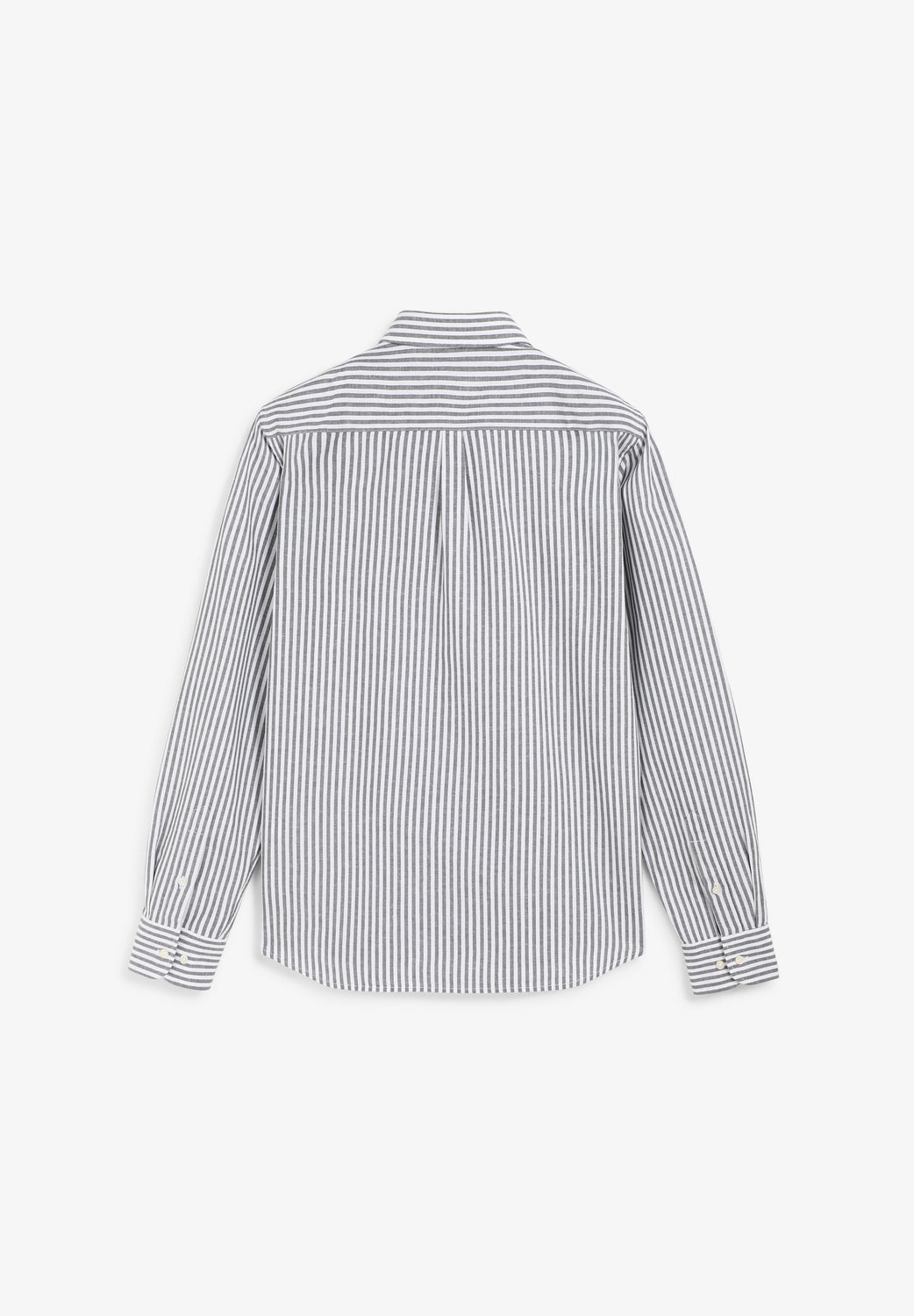 Oxford shirt made of a cotton and linen blend. Stripe print. Front button fastening. Contrast embroidered skull on the chest.