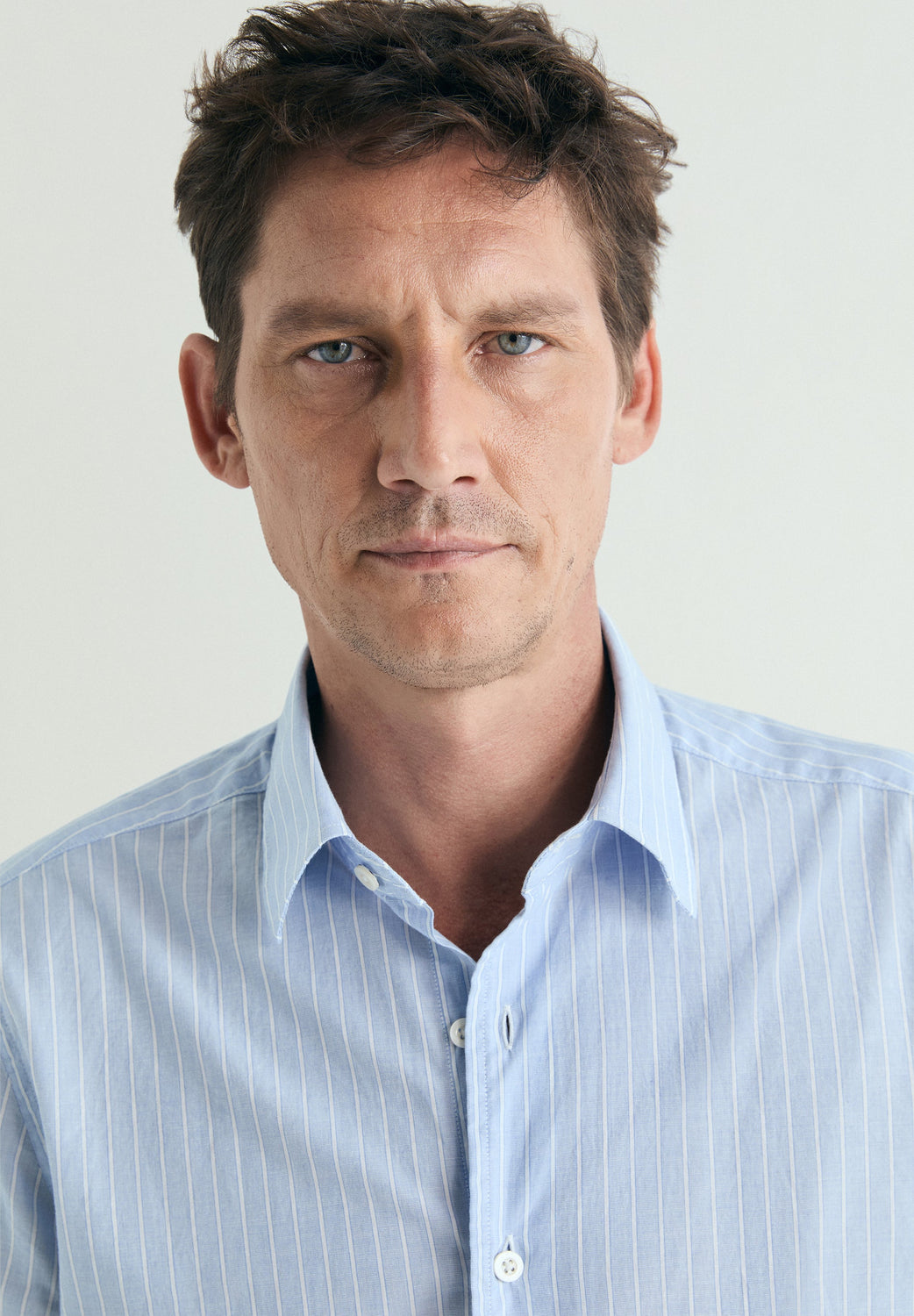 Shirt made of 100% cotton. Stripe print. Front button fastening. Embroidered logo detail on the placket.