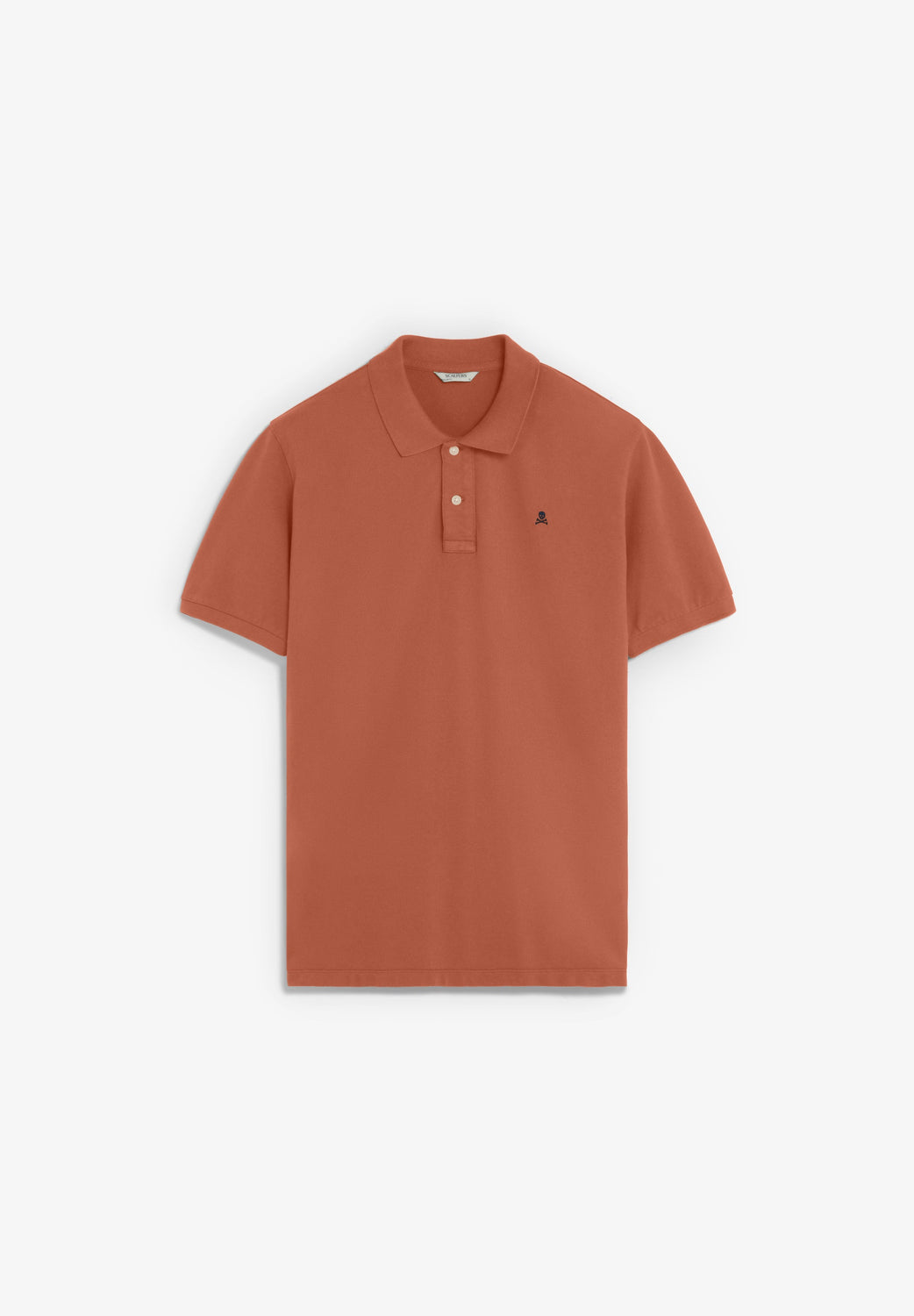 Pique polo shirt made of 100% BCI cotton. Short sleeve. Regular fit. Two-button placket. Matching embroidered skull on the chest. Ribbed collar and cuffs.