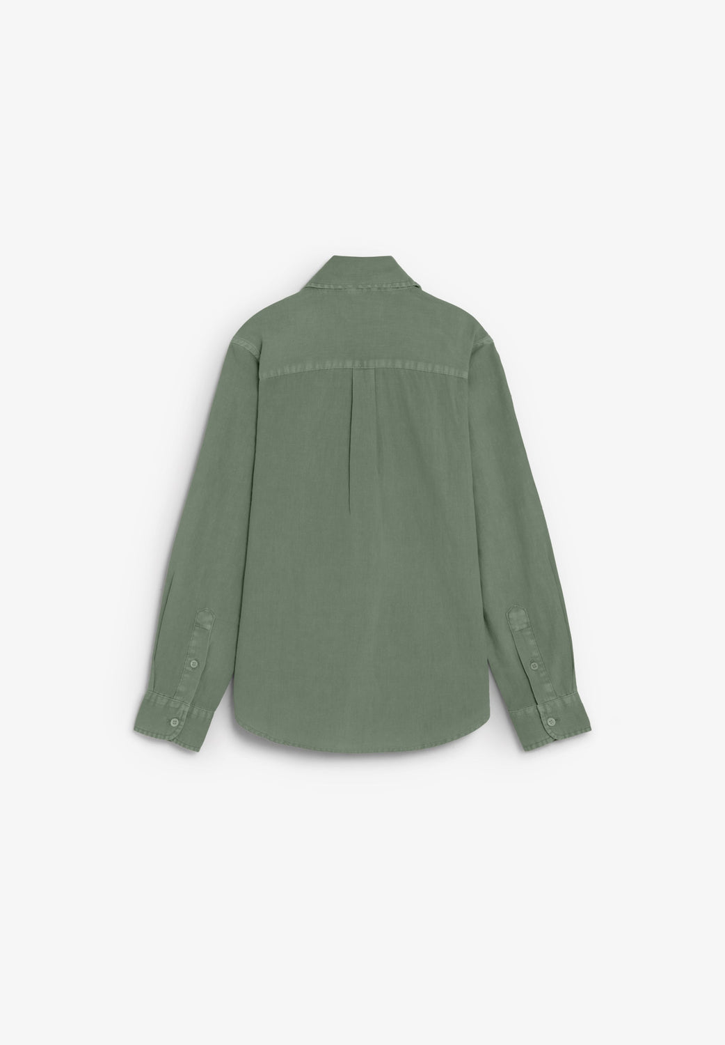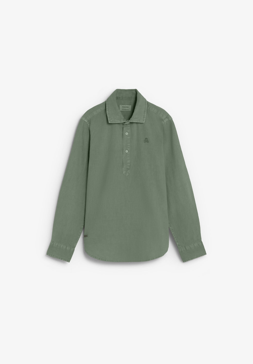 Polo shirt made of a cotton and linen blend. Shirt collar and long sleeves with buttoned cuffs. Front button fastening. Matching embroidered skull detail on the chest.