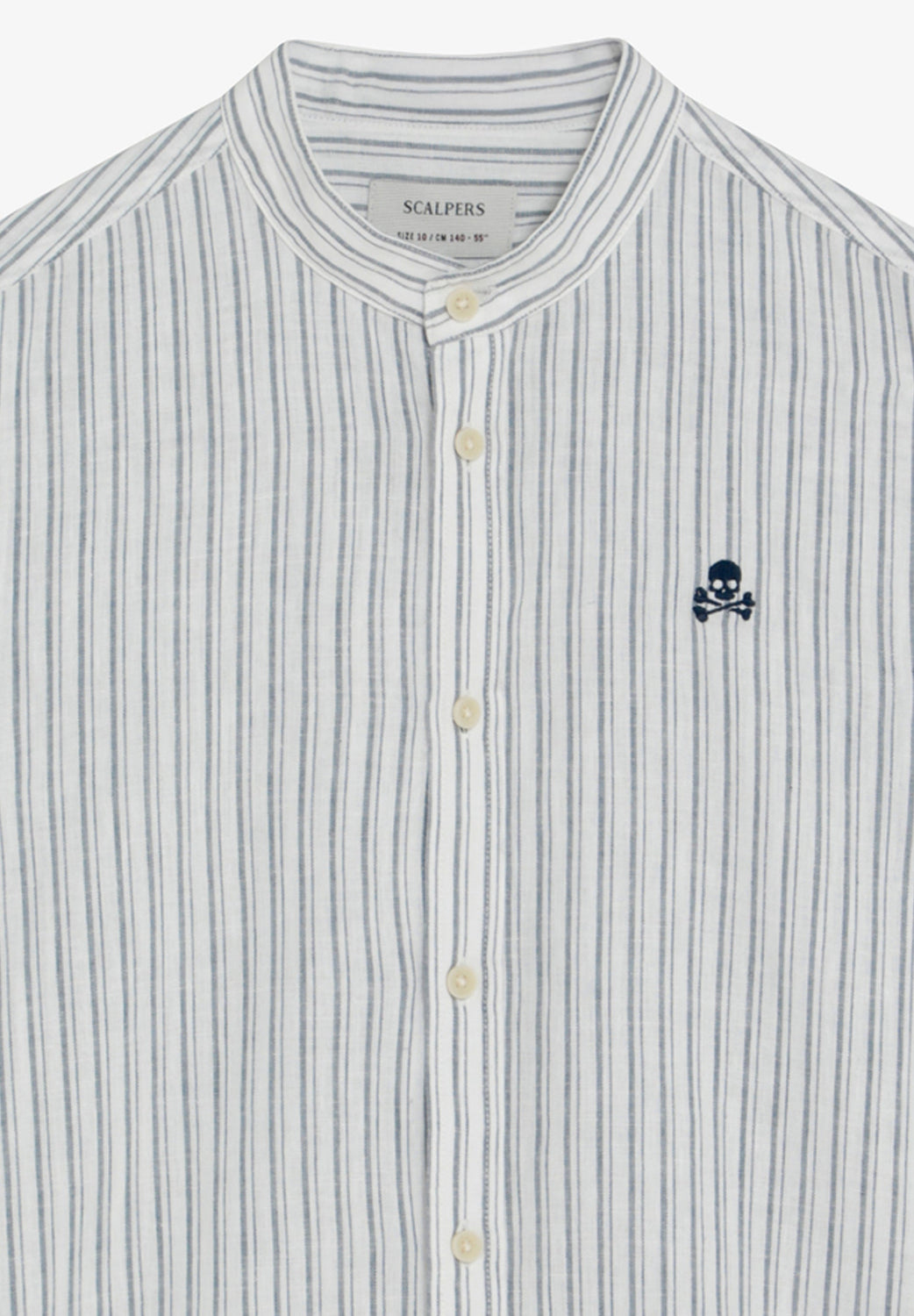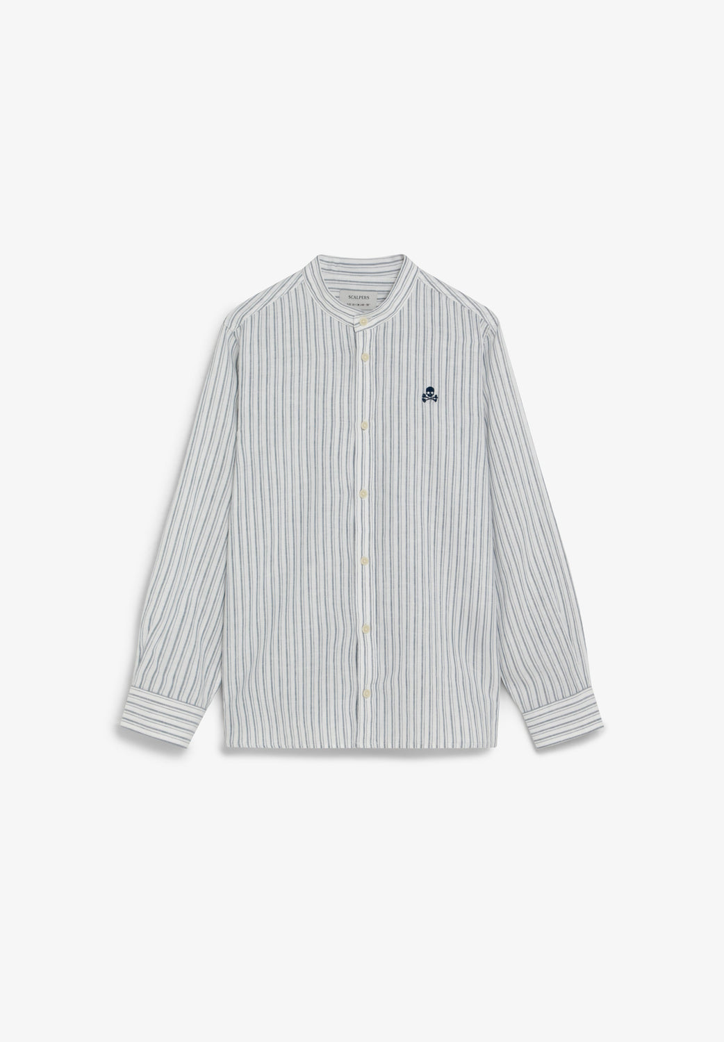 Striped shirt made of 100% BCI cotton. Stand-up collar and button fastening Embroidered skull on the chest. Regular fit with buttoned cuffs.