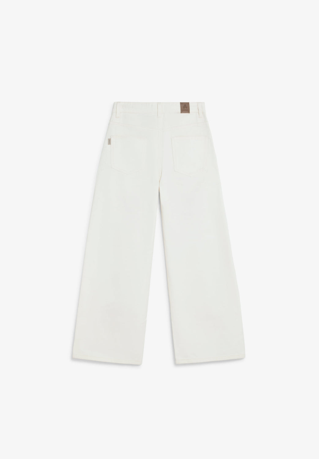 Culotte jeans made of 100% BCI cotton. Embroidered details at the front. Belt loops at the waist and zip and button fastening.