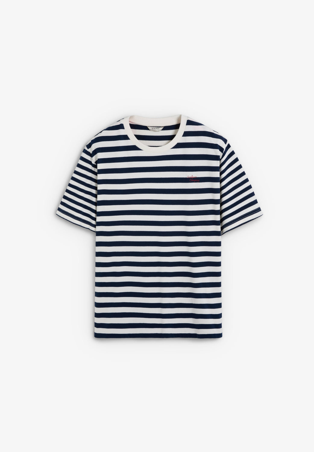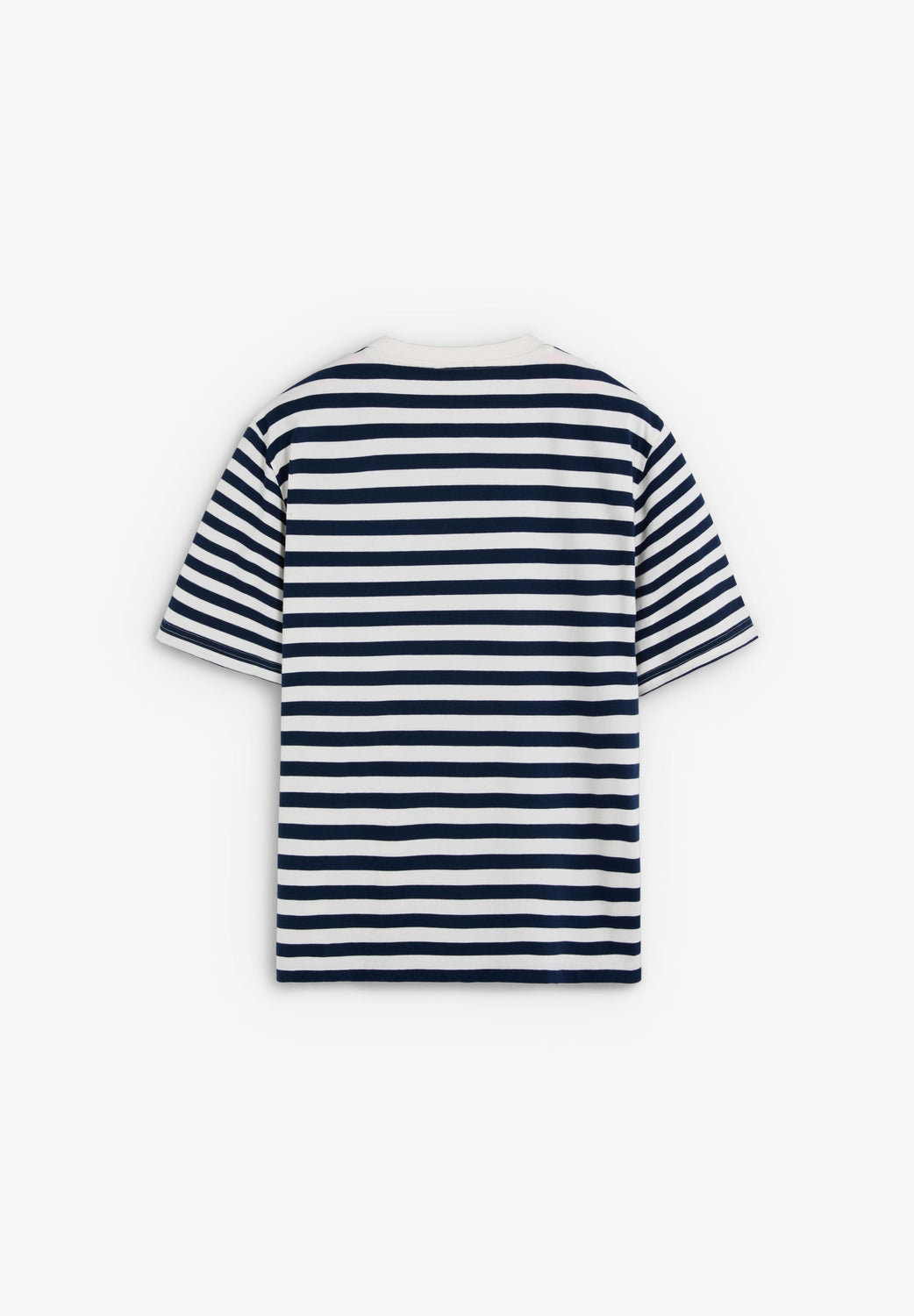 T-shirt made of 100% BCI cotton. Boxy Fit. Contrast round neck and short sleeves. Stripe print. Embroidered detail on the chest.