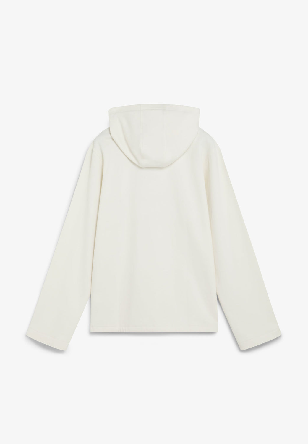 Sweatshirt with hood made of 100% BCI cotton. Faded effect. Long sleeves. Front button fastening at the collar. Adjustable lower drawstring. Front pocket.