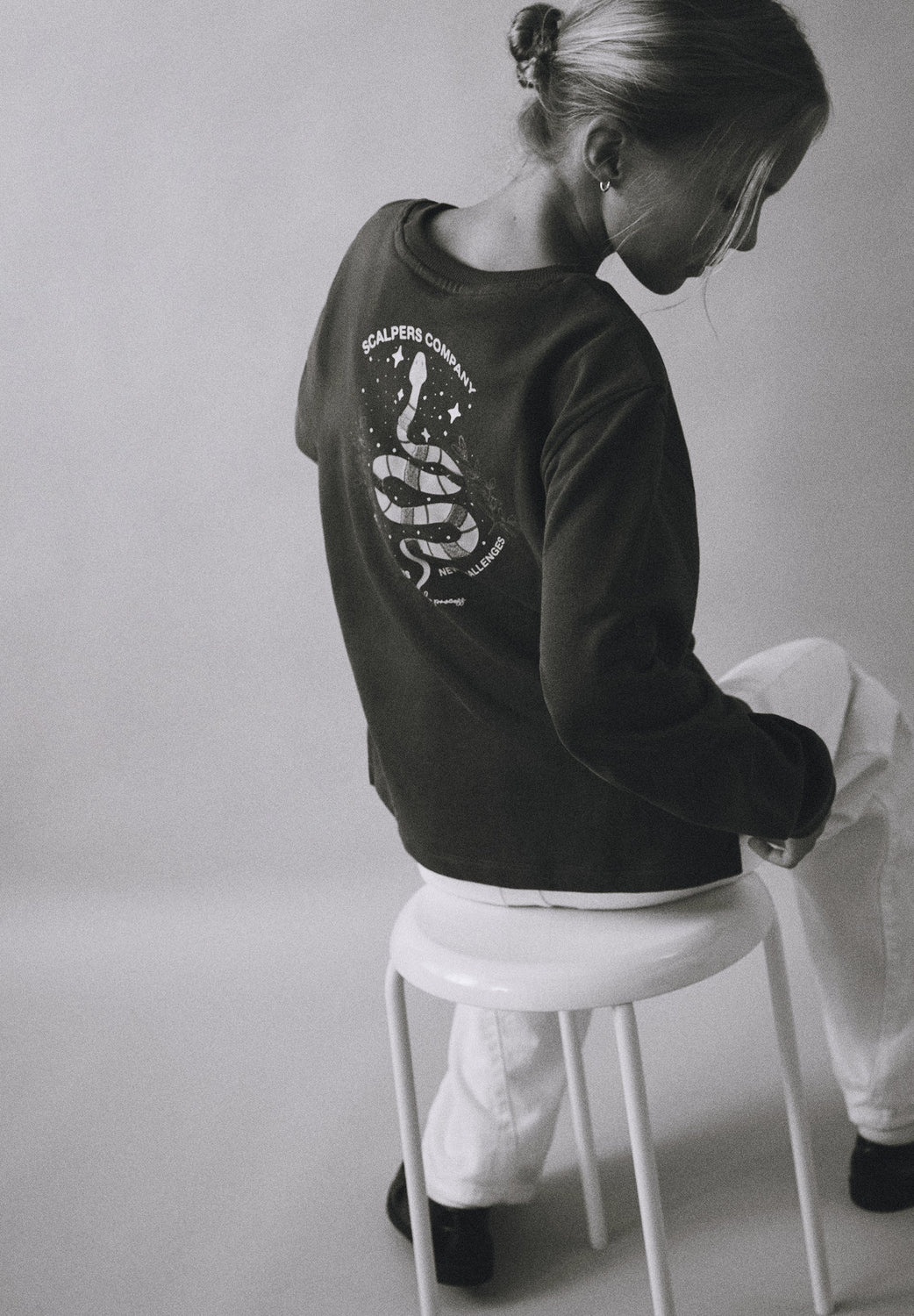 Sweatshirt made of 100% BCI cotton. Ribbed trim. Printed on the back. Contrast embroidery on chest and back. Front label detail at the waist.